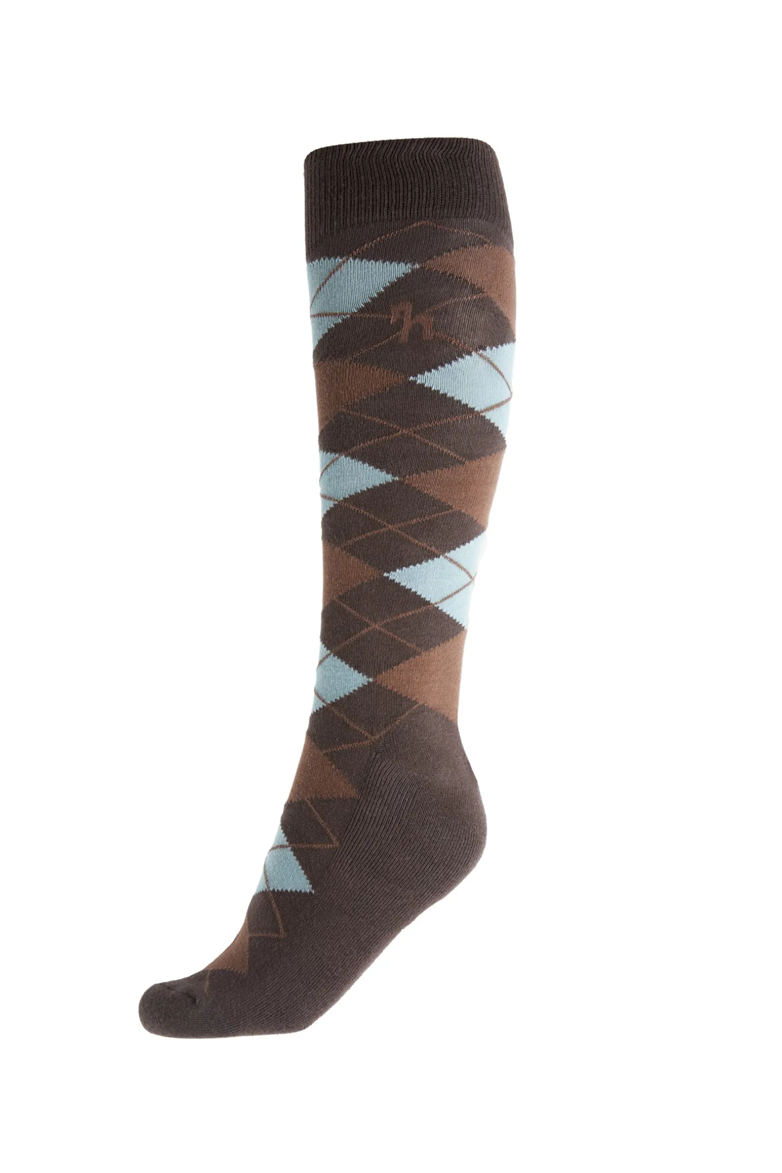 Die weichen, bequemen Socken wirst du in allen Farbkombinationen haben wollen. Die hohen Kniestrümpfe sind wunderbar über Reithosen oder Jeans, denn dieses tolle Muster will man nicht verstecken. Der Fuß aus Baumwoll-Terry-Mix ist atmungsaktiv und ist für bessere Haltbarkeit zusätzlich verstärkt.