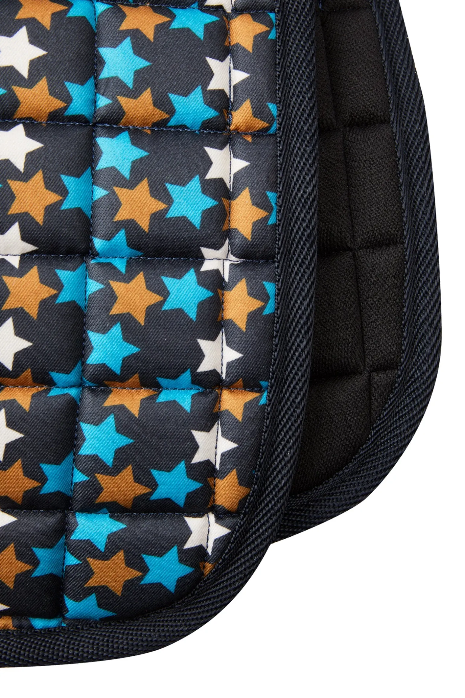 Die Horze Alex Ponyschabracke ist mit einer Quadratsteppung ausgestattet, die für Komfort unter dem Sattel sorgt. Zwei Riemen machen das Befestigen leicht. Der Sternenprint sorgt für einen Farbtupfer. Kombiniere die Schabracke mit unserer Horze Alex Fliegenhaube, Gamaschen und Streichkappen für einen kompletten Look!