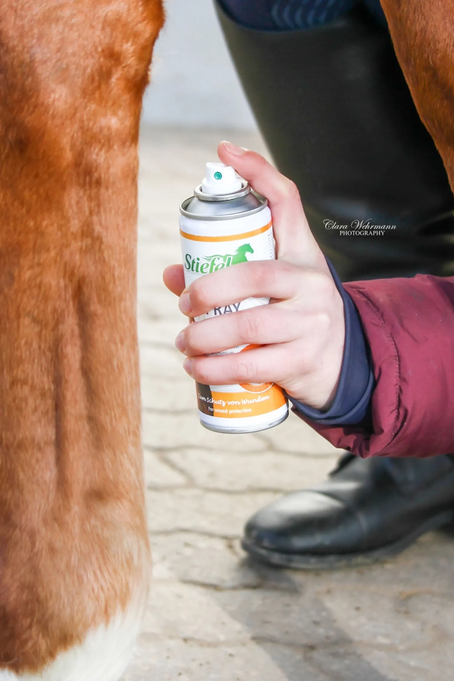 Stiefel Aluspray wird zum Schutz von Wunden eingesetzt. Die enthaltenen, feinen Aluminiumpartikel können eine atmungsaktive Schutzschicht über der Wunde bilden, die vor Bakterien oder Verunreinigungen schützen kann. Durch das Auftragen von Stiefel Aluspray bleibt die Wunde sauber, bekommt aber trotzdem noch genügend Sauerstoff, um die Wundheilung zu begünstigen. Stiefel Aluspray legt sich dabei als feiner Sprühnebel über die betroffene Hautstelle und kann die Wundheilung positiv unterstützen. Anwendung: Stiefel Aluspray vor Gebrauch gut schütteln, um mit der Rührkugel den Doseninhalt gut zu homogenisieren, insbesondere nach längerer Lagerung. Wundfläche aus ca. 20 – 30 cm Entfernung gleichmäßig einsprühen, bis sich ein geschlossener Film gebildet hat. Wenn der Film nach 1 –2 Tagen seine Dichte verlieren sollte (z. B. durch Berührungen oder die Witterung), kann der Vorgang bei Bedarf wiederholt werden. Bei nervös reagierenden Tieren sollte die Dose außerhalb der Hörweite der Tiere aufgeschüttelt und mit den Sprühvorgängen sanft begonnen werden. Hinweis: Nur zur äußerlichen Anwendung. Pflegemittel kühl, trocken und vor direkter onneneinstrahlung geschützt lagern. Vor kleinen Kindern gesichert aufbewahren. Lagerung der Dose zwischen 15°C und 25°C. Zu kalte Dosen vorsichtig auf Zimmertemperatur bringen.