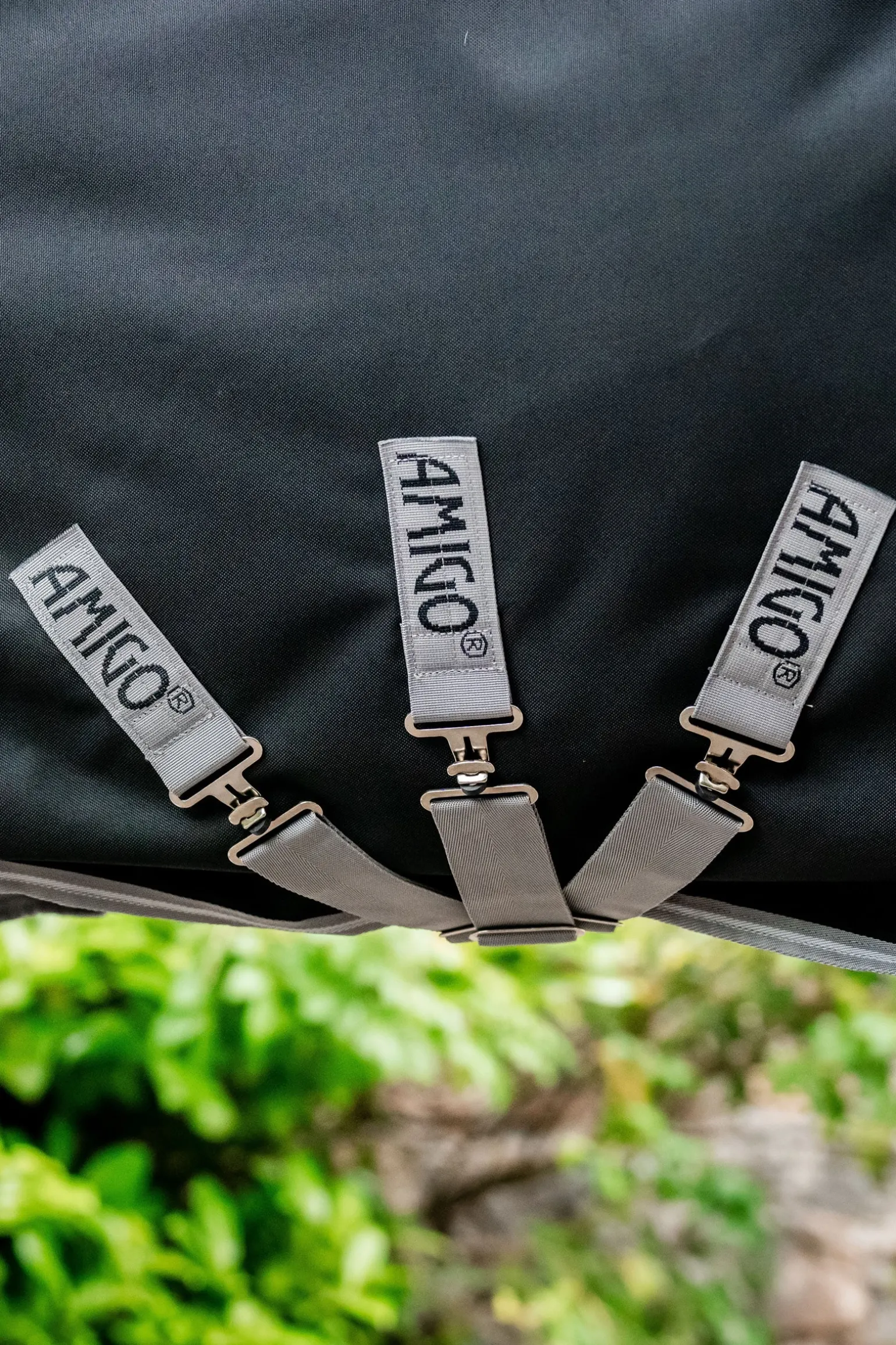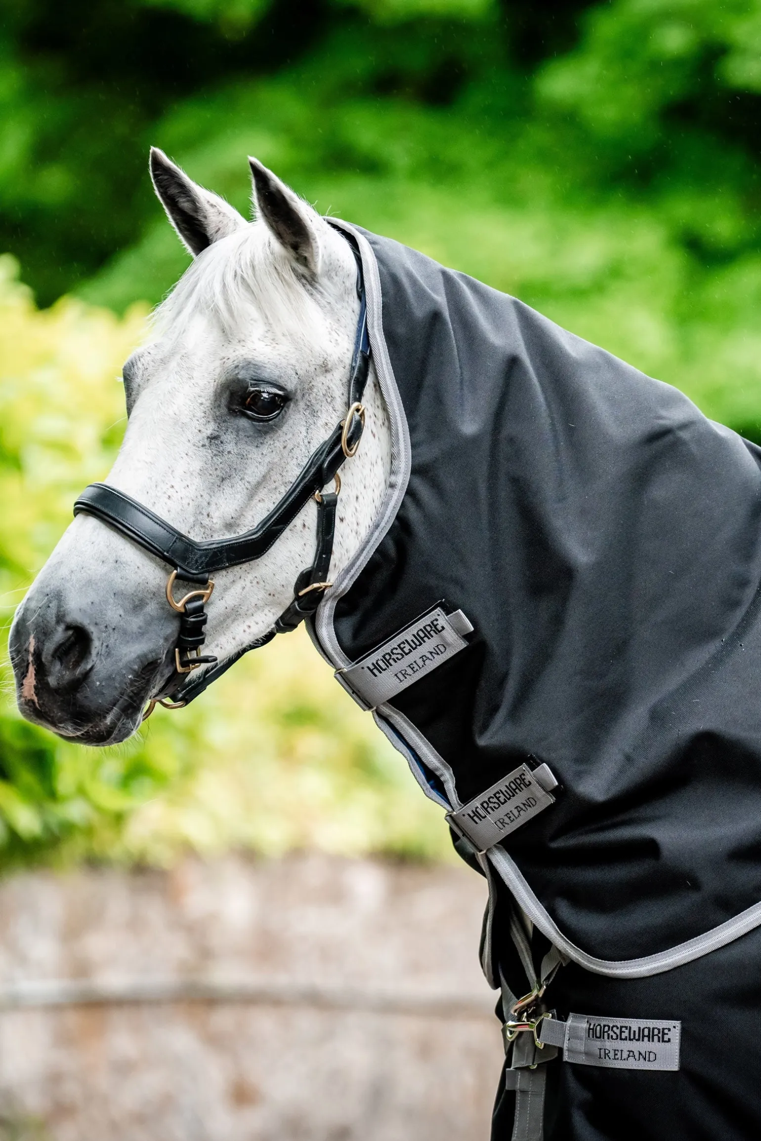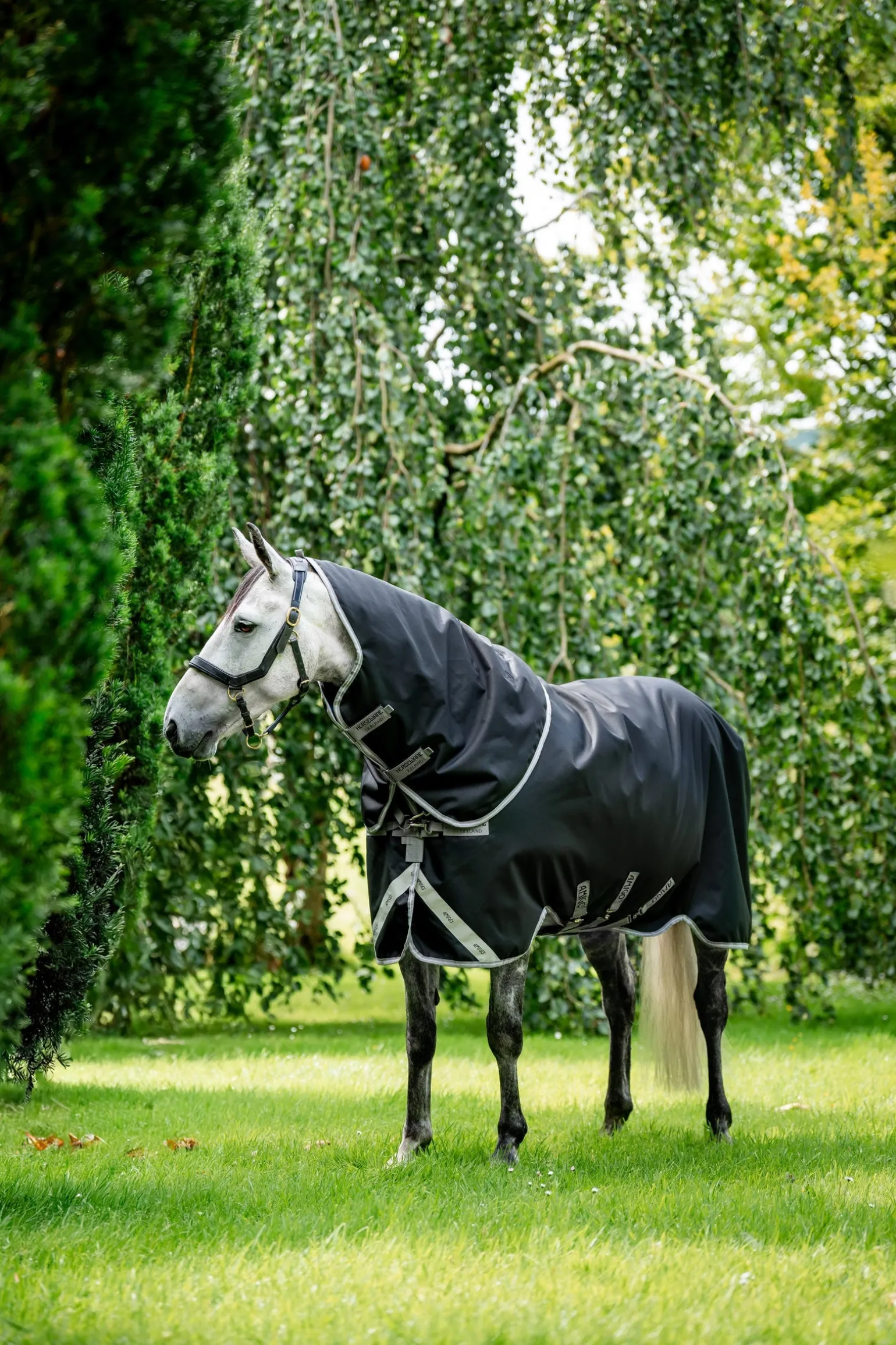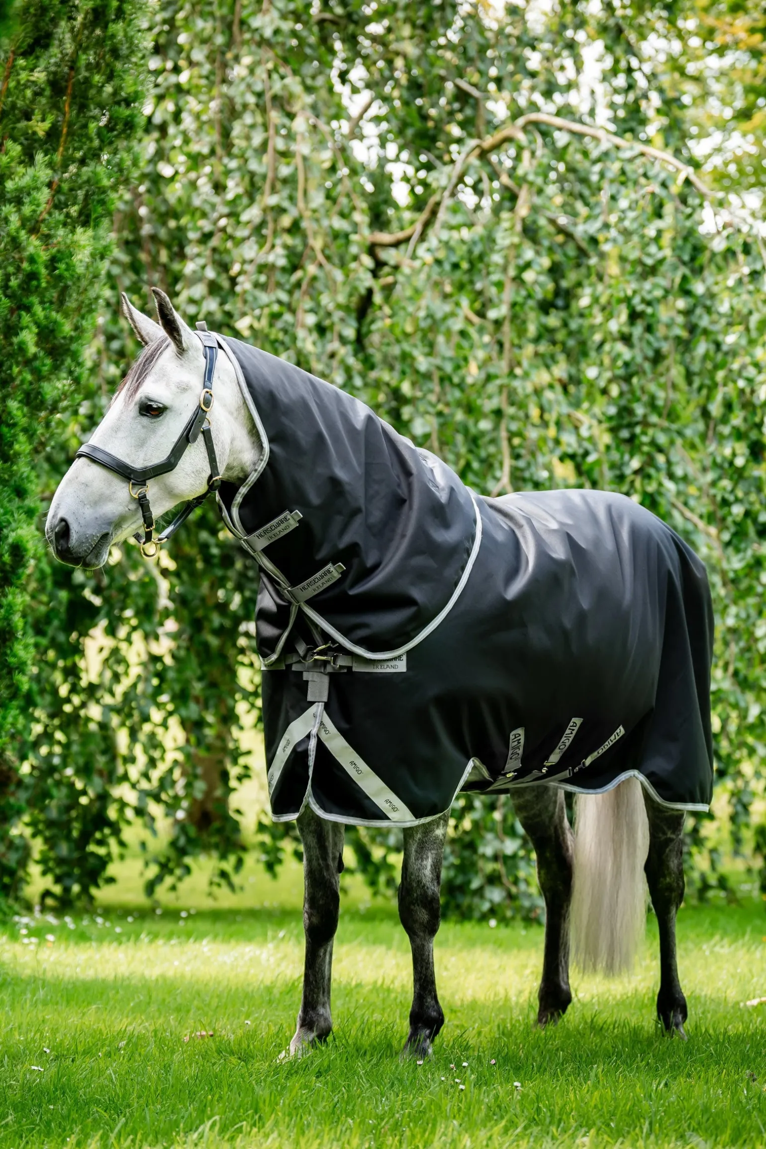 Die Amigo® 1200D Plus Outdoordecke 50 g zählt zu den meistverkauften Amigo®-Decken – sie verbindet Robustheit, Komfort und Vielseitigkeit für dein Pferd. Das strapazierfähige, wasserdichte 1200D Polyesteraußenmaterial schützt vor Witterungseinflüssen und bleibt dabei atmungsaktiv. Innen sorgt das 210T Polsterfutter für eine glatte, glänzende Oberfläche auf der Pferdehaut, während 50 g Füllung angenehme Wärme bei wechselhaftem Wetter bieten. Das antistatische und antibakterielle Futter verbessert Komfort und Hygiene. Eine abnehmbare Kapuze mit sicheren Halteösen, das Surefit-Halsdesign, der V-Front-Verschluss und die Beinausschnitte ermöglichen uneingeschränkte Bewegungsfreiheit. Drei Kreuzgurte und ein abwischbarer PVC-Schweifriemen sorgen für einen sicheren und justierbaren Sitz. Ergänzende Details sind reflektierende Streifen für bessere Sichtbarkeit, eine wasserdichte Schweiflatz-Abdeckung für zusätzlichen Schutz und Beingurt-Kompatibilität für mehr Sicherheit. Die Decke ist darüber hinaus liner-kompatibel, sodass sie sich flexibel mit Horseware®-Linern (separat erhältlich) kombinieren lässt. Eine zuverlässige Outdoordecke einer ikonischen Marke, entworfen, um dein Pferd bei wechselhaftem Wetter stets komfortabel zu halten.