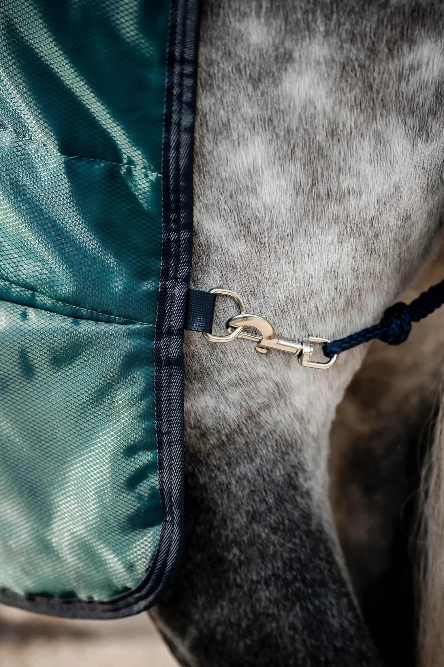 Die Außenschicht ist aus 210D-Polyester mit Diamond-Ripstop gefertigt, einem verstärkten Ripstop-Gewebe, das in einem schicken Diamantenmuster verarbeitet ist und dadurch besonders strapazierfähig und langlebig. Innen ist die Decke mit einem kuscheligen Mikrofaserfutter und 100 Gramm thermofixierter Faserfüllung ausgestattet, die durch ihre hohe Bauschkraft für einen langen Wärmerückhalt sorgen. Das klassisch geschnittene Design mit geradem Brustverschluss garantiert einen sicheren Sitz, ergänzt durch zwei Kreuzgurte und einen Schweifriemen, die ein Verrutschen verhindern. Für mehr Flexibilität ist die Decke mit Liner-Laschen ausgestattet, so dass sie durch Anbringen eines Horseware®-Liners einfach an wechselnde Temperaturen angepasst werden kann.