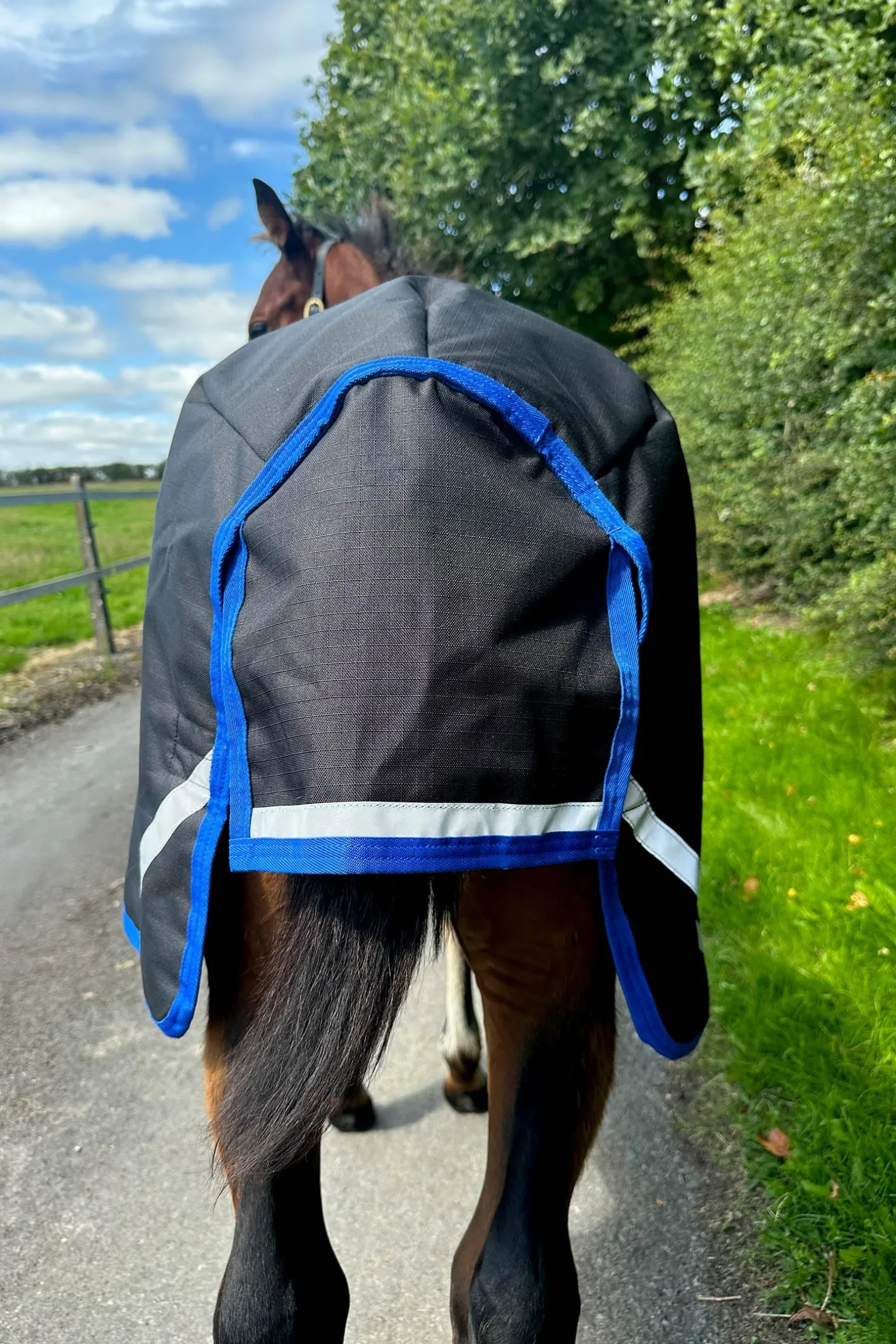 Waschanleitung: Es wird empfohlen, Pferdedecken professionell reinigen zu lassen. Achte darauf, dass alle Klettverschlüsse geschlossen und Schnallen/Riemen vor dem Waschen befestigt sind. Nur an der Luft trocknen, fern von Wärmequellen. Lagerhinweis: Nach dem Trocknen die Decke ordentlich in einer atmungsaktiven Aufbewahrungstasche verstauen. Kühl und trocken lagern, geschützt vor Feuchtigkeit, Hitze und UV-Strahlung. Die Originalverpackung eignet sich hervorragend zur Wiederverwendung, z. B. als Tasche für Reitausrüstung.