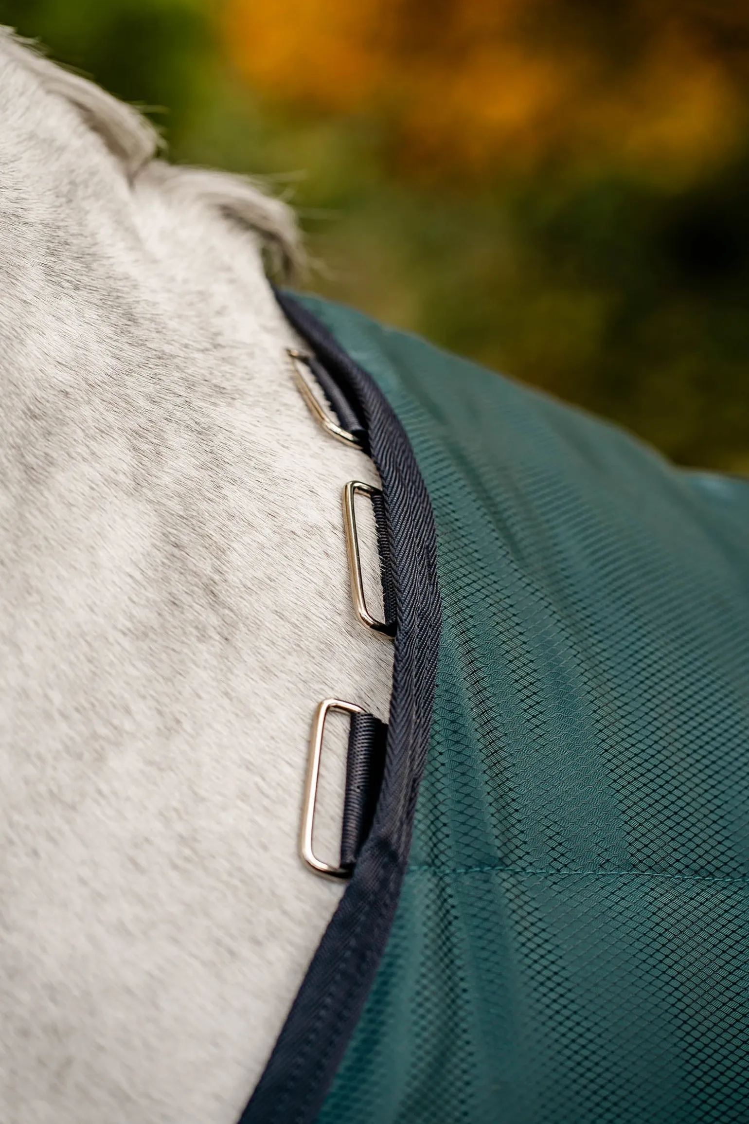 Die Amigo® Ripstop Insulator Stable 50 g bietet atmungsaktive Wärme und strapazierfähige Layering-Möglichkeiten in einer leichten Stalldecke. Sie verfügt über 50 g Füllung und ein Außenmaterial aus 210D Diamond Ripstop Polyester. Das verstärkte Diamond Ripstop Gewebe sorgt für Langlebigkeit und Strapazierfähigkeit, während das glanzverstärkende Innenfutter ein seidig-weiches Gefühl auf dem Fell hinterlässt. Ein gerader Frontverschluss mit doppeltem Verschluss, Kreuzgurte und Schweifriemen sorgen für einen bequemen und sicheren Sitz. Schlaufen für Halsteil und Liner ermöglichen es, bei kälterem Wetter zusätzliche Wärme einzusetzen. Abnehmbares Halsteil und Liner sind separat erhältlich.