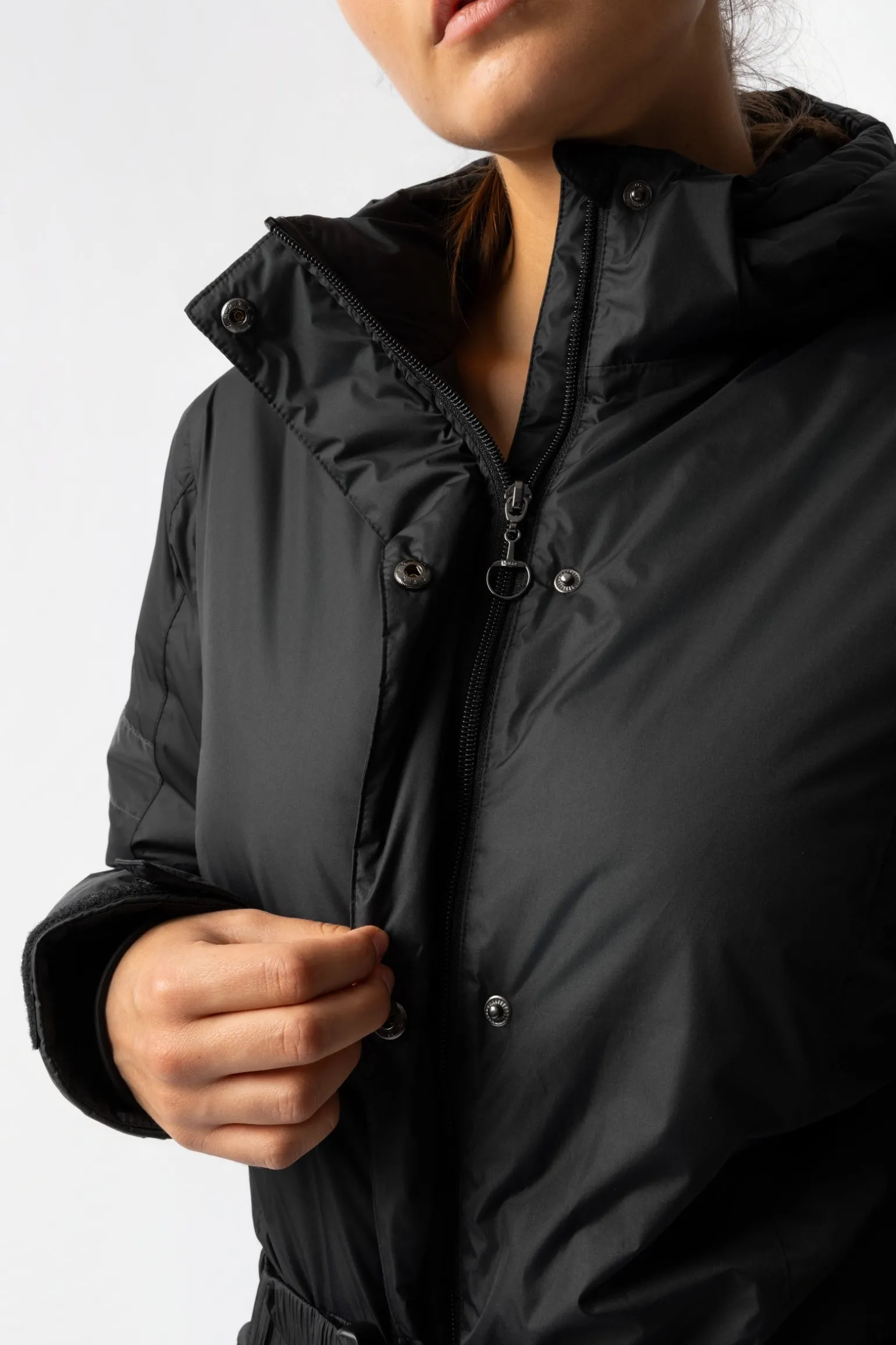 Das atmungsaktive Gewebe sorgt für Komfort, während der Vollbesatz aus Silikon hervorragenden Halt im Sattel bietet. Der Overall verfügt über eine abnehmbare Kapuze und einen stretchigen Gürtel für einen individuellen Stil und eine individuelle Passform. Zwei Reißverschlusstaschen bieten praktischen Stauraum, und der Frontreißverschluss ermöglicht ein einfaches An- und Ausziehen. Die elastischen Beinabschlüsse mit Öffnung und Schneefängen halten die Kälte ab und erleichtern das Anziehen. Der Horze-Logoaufnäher am Ärmel sorgt für einen Hauch von Stil. Mit diesem vielseitigen und funktionellen Overall bleibst du wohlig warm und geschützt.