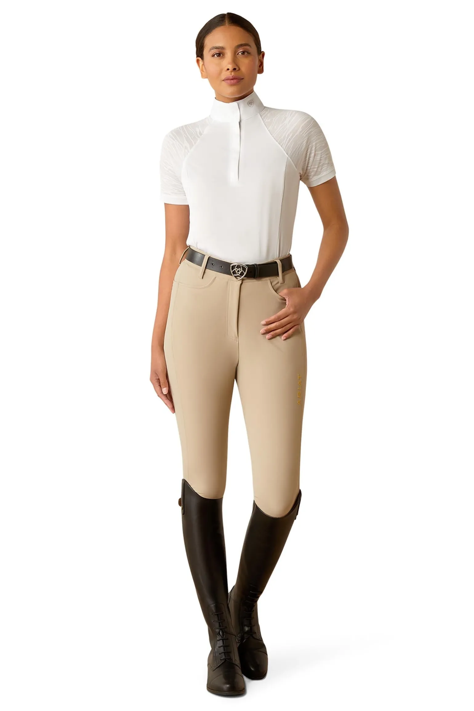 Setze mit diesem leichten Turniershirt im und außerhalb des Turnierplatzes ein Zeichen. Mit den schönen Mesh-Einsätzen mit Tigerstreifen an Schultern und Rücken und einer eleganten Knopfleiste ist es ein Must-have für den Sommer, zu dem du immer wieder greifen wirst. Figurbetonter Schnitt mit viel Bewegungsfreiheit.