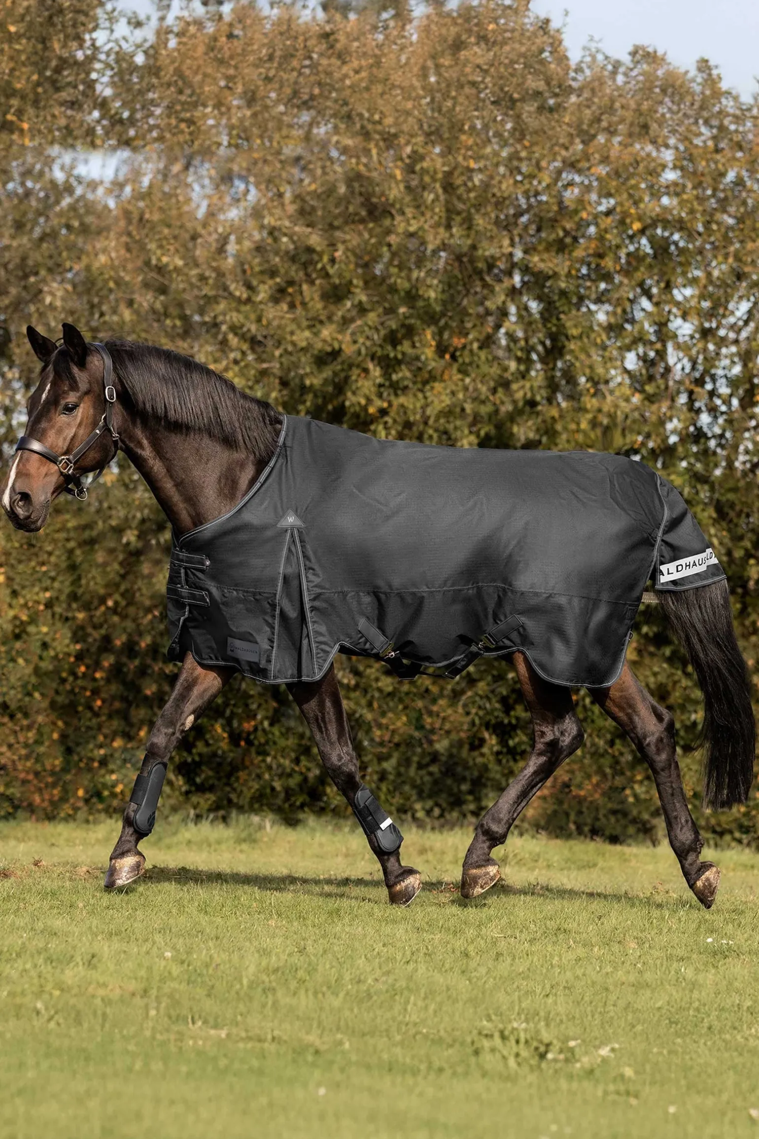 Mit der Waldhausen Arctic Weidedecke kannst du sicher sein, dass dein Pferd auch bei widrigen Bedingungen optimal geschützt ist. Das antibakterielle Innenfutter gewährleistet höchsten Komfort. Die doppelten T-Frontverschlüsse sorgen für eine sichere Passform und verhindern ein Verrutschen. Das Einfassband mit reflektierenden Details erhöht die Sichtbarkeit bei schlechten Lichtverhältnissen. Die großzügige Gehfalte ermöglicht uneingeschränkte Bewegungsfreiheit, während die Kreuzgurte für zusätzliche Stabilität sorgen. Das 600 Denier Außenmaterial bietet eine strapazierfähige Barriere gegen Wind und Wetter.