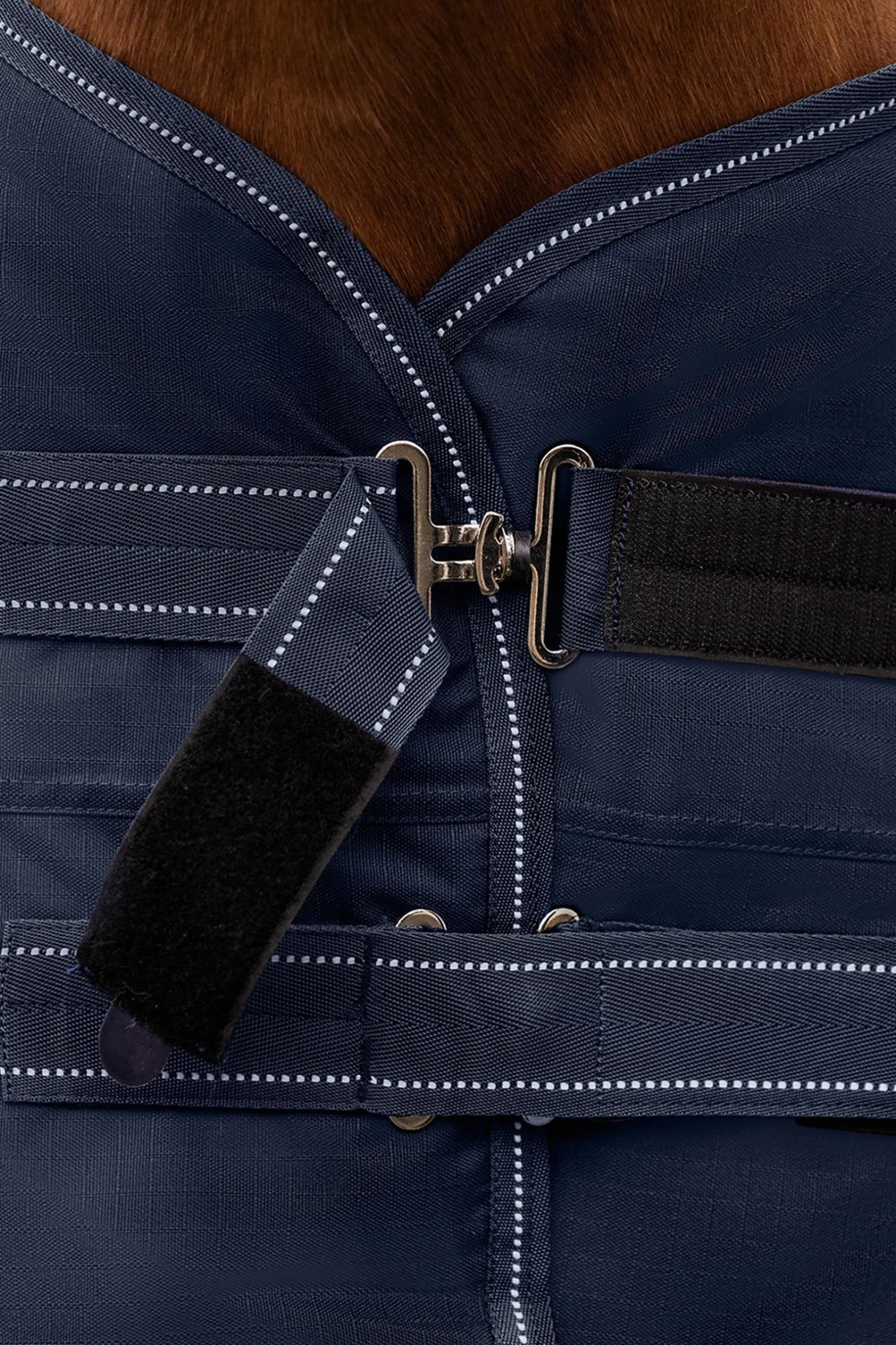 Mit der Waldhausen Arctic Weidedecke kannst du sicher sein, dass dein Pferd auch bei widrigen Bedingungen optimal geschützt ist. Das antibakterielle Innenfutter gewährleistet höchsten Komfort. Die doppelten T-Frontverschlüsse sorgen für eine sichere Passform und verhindern ein Verrutschen. Das Einfassband mit reflektierenden Details erhöht die Sichtbarkeit bei schlechten Lichtverhältnissen. Die großzügige Gehfalte ermöglicht uneingeschränkte Bewegungsfreiheit, während die Kreuzgurte für zusätzliche Stabilität sorgen. Das 600 Denier Außenmaterial bietet eine strapazierfähige Barriere gegen Wind und Wetter. Die Arctic Weidedecke verfügt über einen höher geschnittenen Hals wodurch Scheuerstellen am Widerrist und Mähnenkamm verhindert werden.