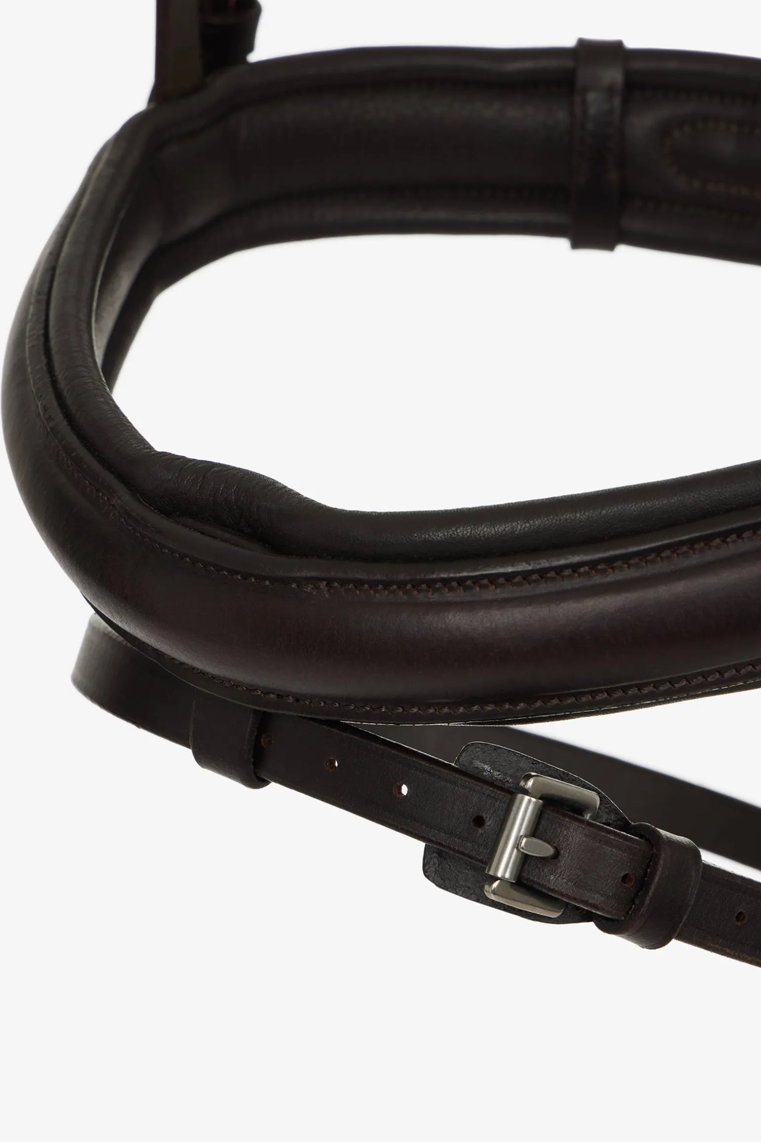 Diese atemberaubende Dressurzäumung kommt in klassischem Schwarz mit kontrastierenden silbernen Beschlägen daher. Sie ist aus weichem und geschmeidigem, geöltem Leder gefertigt, das ihr ein luxuriöses Aussehen und Gefühl verleiht.