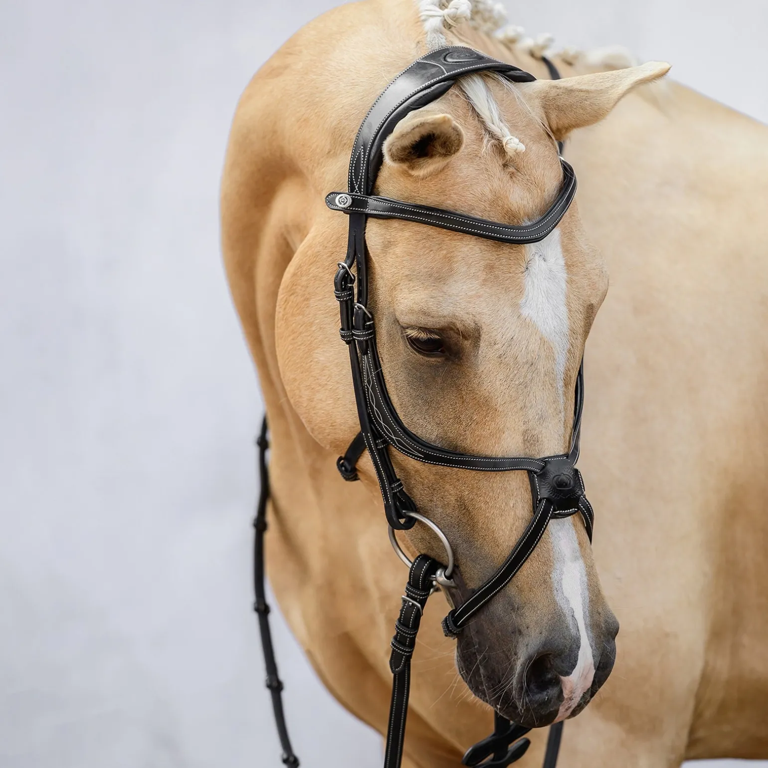 Der Stirnriemen hat den neuen, konvexen PS-Knopf mit einer extra stabilen Schnalle, die den Stirnriemen in Position hält und das Leder nach hinten und unten formt.