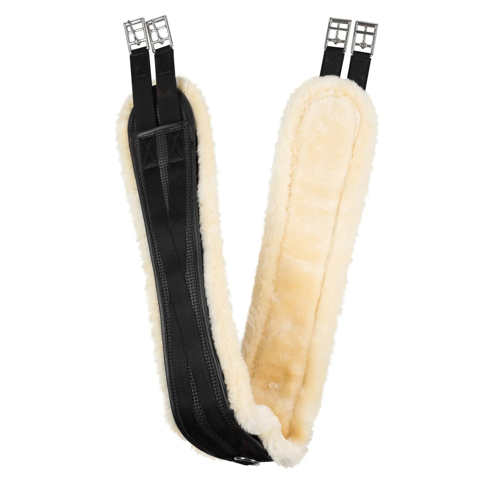 Schönes, ergonomisches Design mit abnehmbarem Fleece-Futter macht diesen Trainings-Gurt vielseitig und einfach in der Anwendung. Elastische Enden machen das Gurten für die Pferde angenehmer. Die klassische Kombination von künstlichem Lammfell und Leder sorgt für einen perfekten Look.