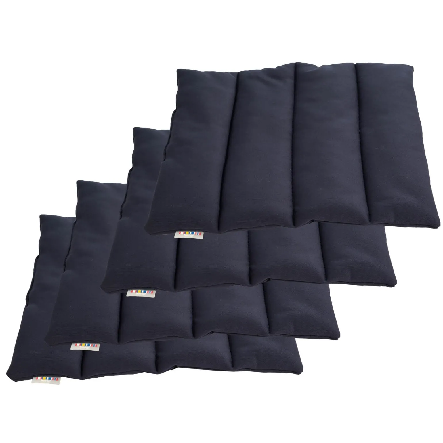Bandagierunterlagen in tiefem Marineblau bieten weichen, gesteppten Schutz unter Stallbandagen.