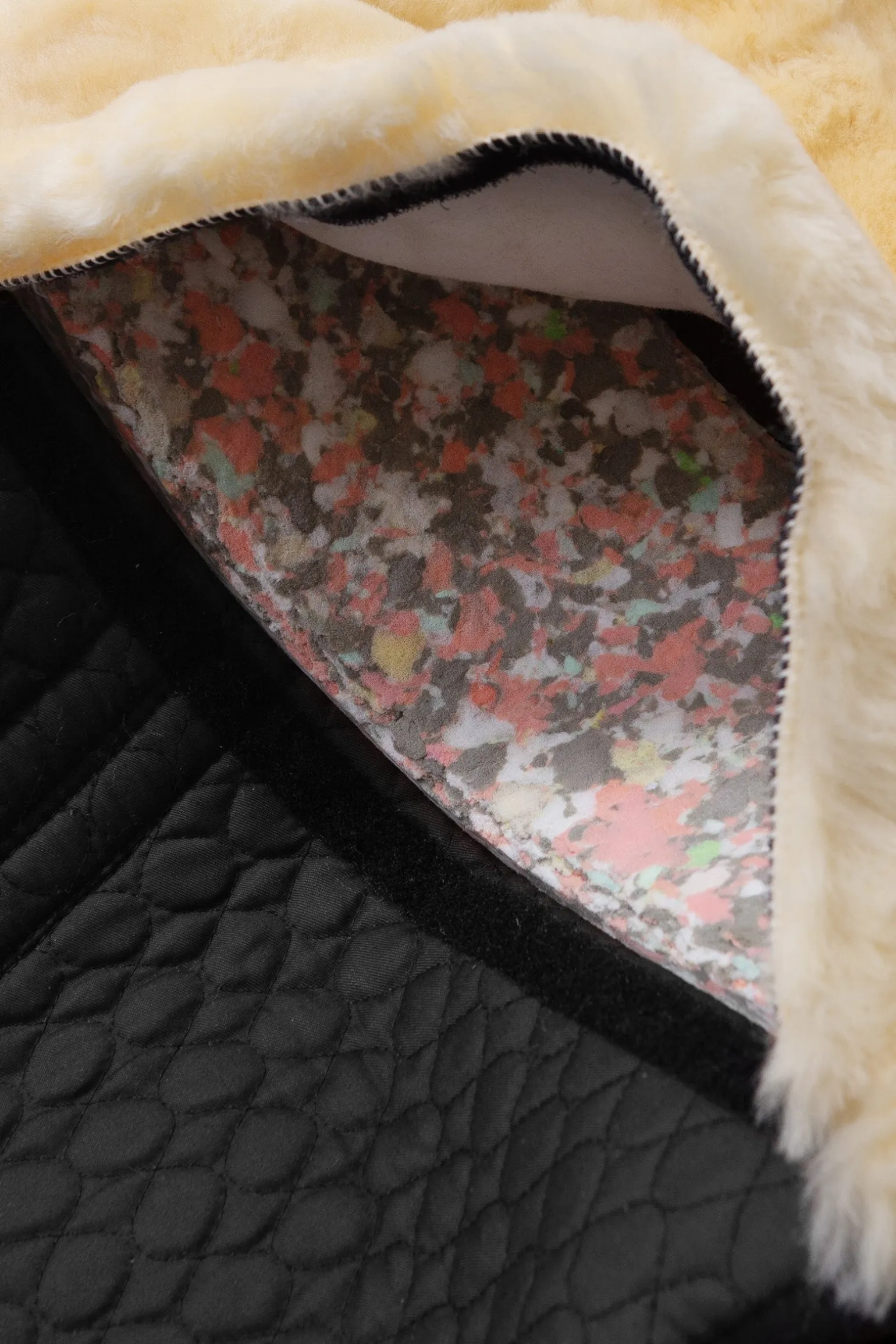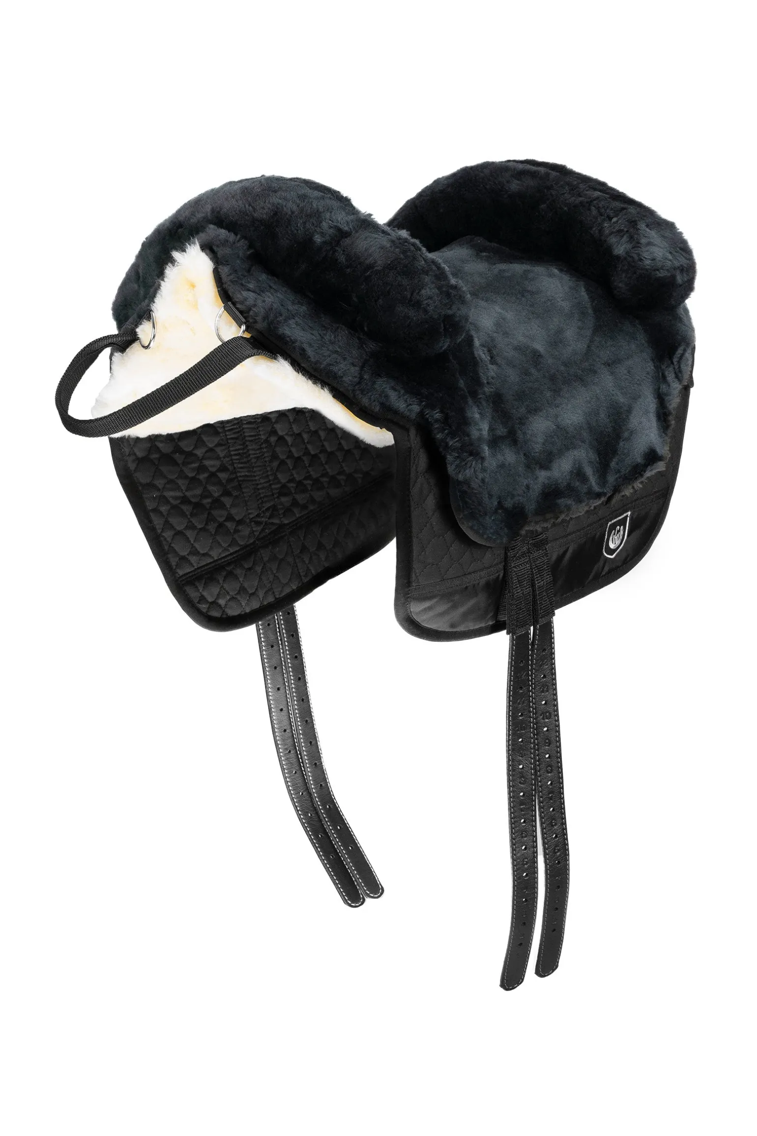 Der Fellsattel im spanischen Stil ist komplett aus Lammfell fertigt und fühlt sich an, als würdest du auf Wolken reiten. Die Sitzfläche ist 30 mm hoch, höhere Vorder- und Hinterzwiesel geben zusätzlichen Halt. Herausnehmbare Polster links und rechts erhöhen den Sitzkomfort und schonen den Pferderücken.