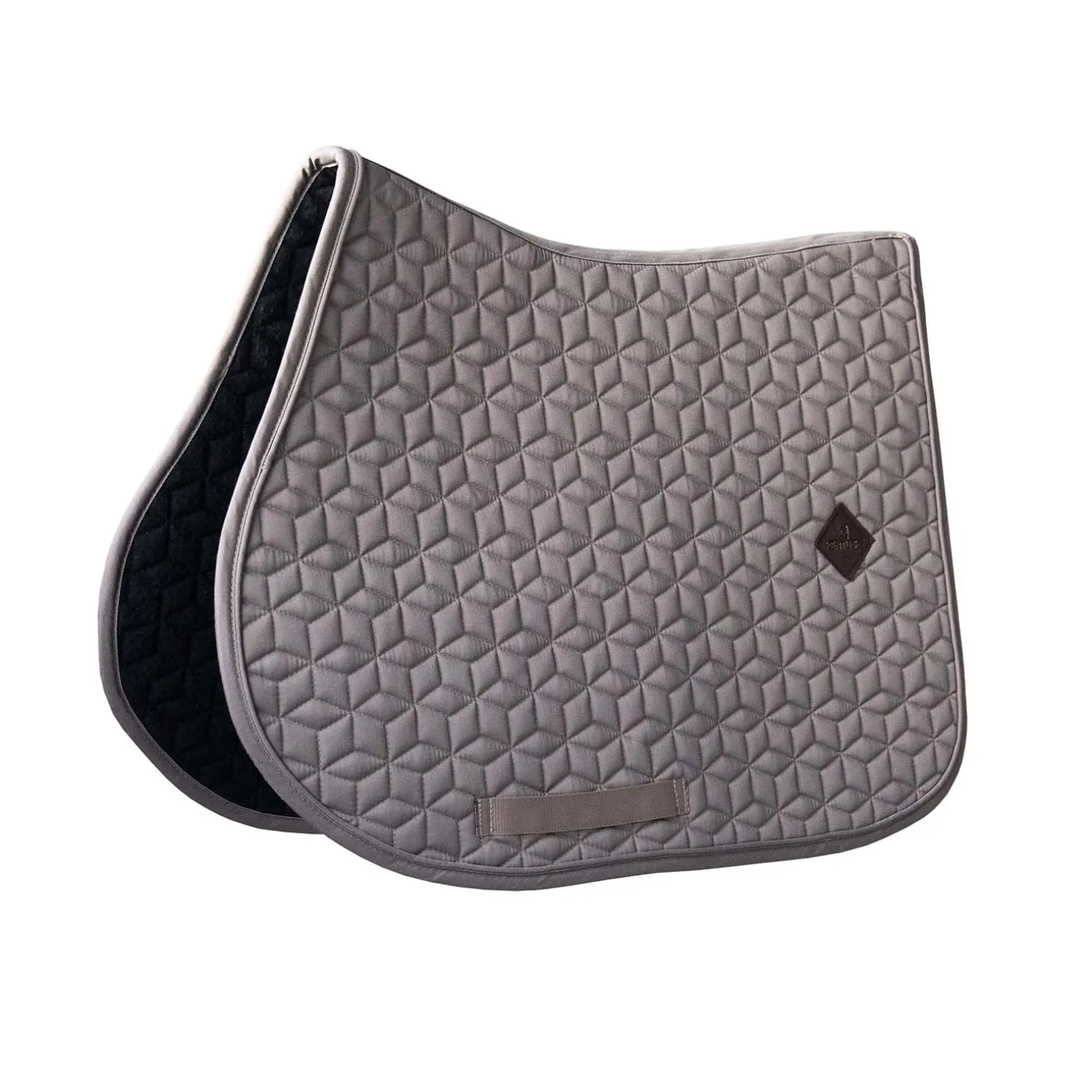 Die Außenseite der Schabracke besteht aus einem baumwollähnlichen Polyester in schicker Würfelsteppung. Auf der linken Seite der Schabracke befindet sich ein kleiner Kunstleder Patch mit dem Kentucky-Logo, unter dem Logo ist genug Platz, um sie zu besticken. Das Futter der Schabracke ist ein feuchtigkeitsableitendes Baumwoll-Polyester-Gemisch.