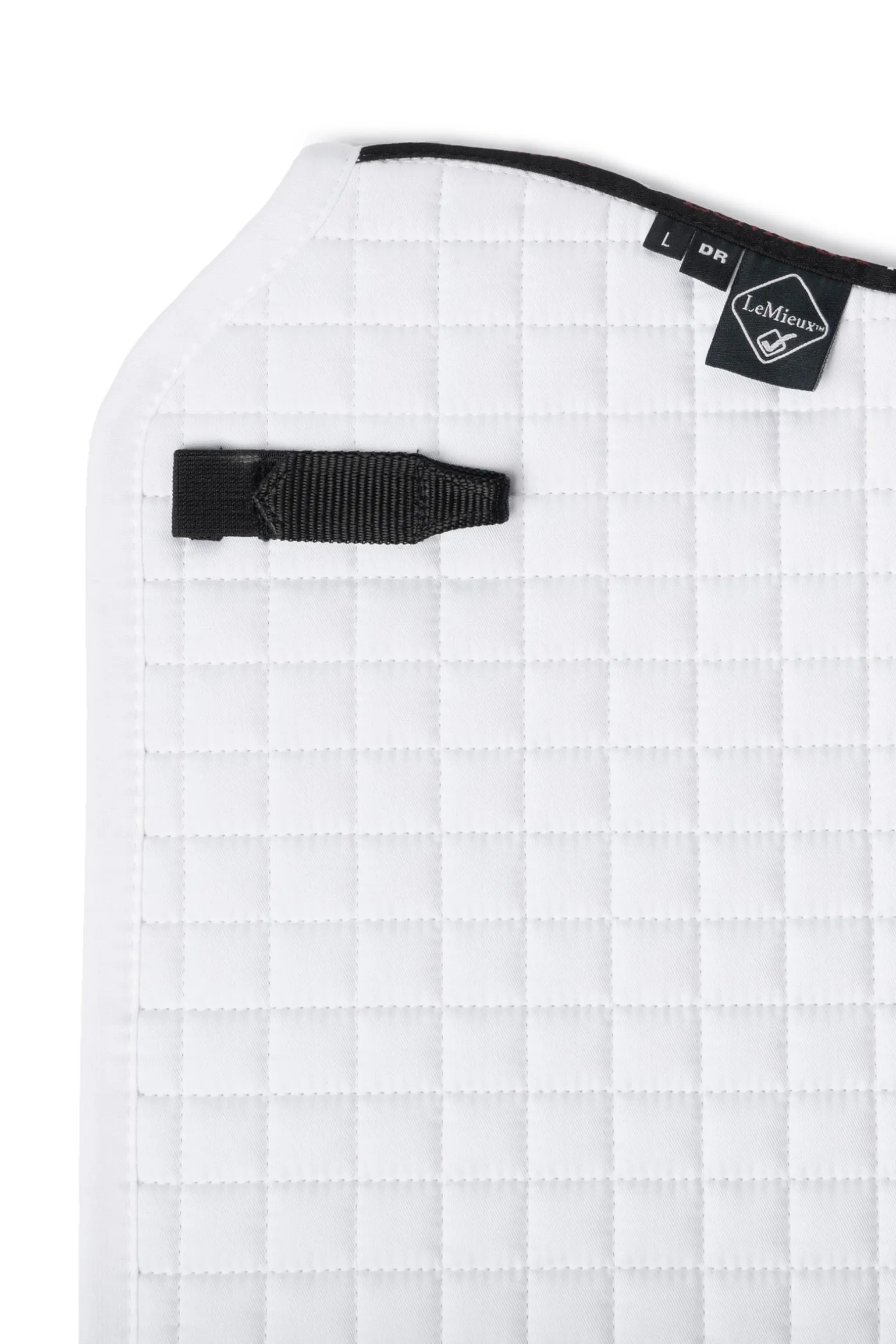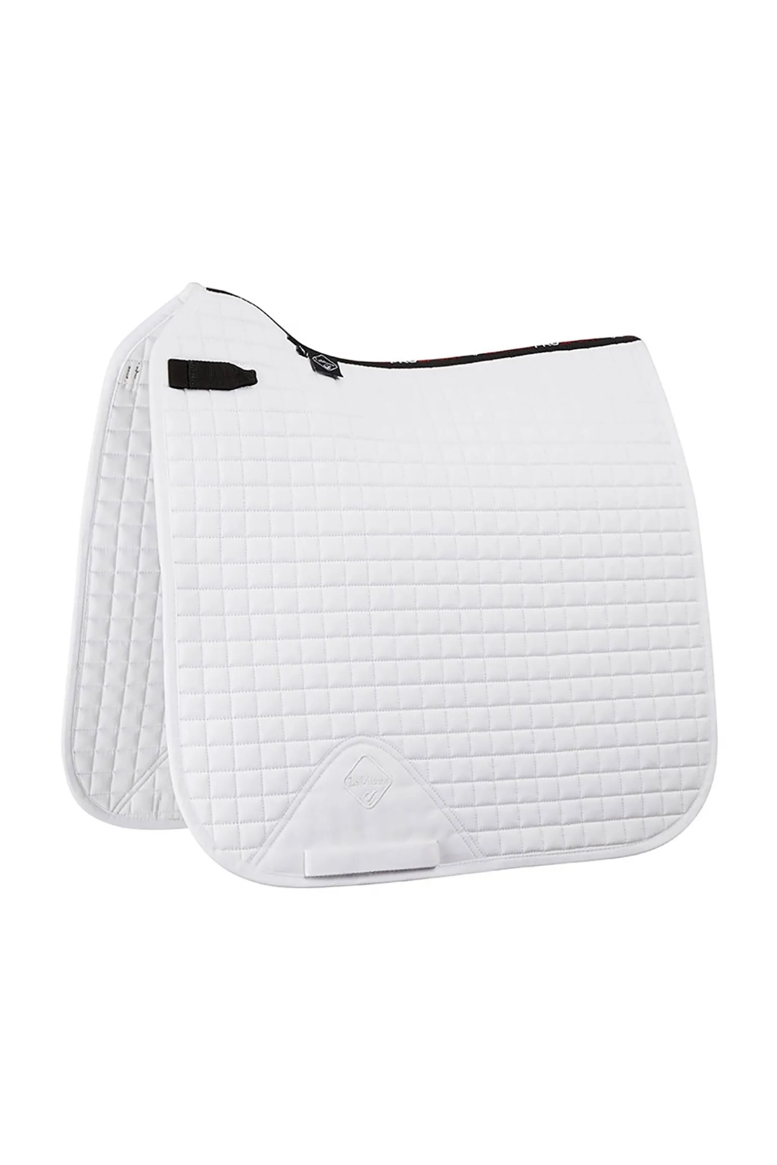 Modisches und strapazierfähiges Pad für maximale Leistung des Materials, für das tägliche Training oder Turniereinsätze geeignet. Premium Baumwolle außen und Fütterung für Temperaturregelung und Atmungsaktivität. Klassischer Dressur-Schnitt mit hohem Widerrist, elastischen D-Ringen & Gurt-Schutz mit innen versteckten Schlaufen um ein Rutschen zu verhindern. Gut in der Maschine zu waschen.