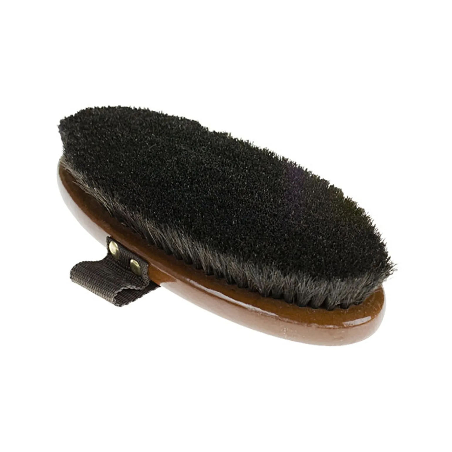 Weiche Rosshaarkardätsche mit 4-fach verschraubter Gurtschlaufe und edel lackiertem Holzrücken.