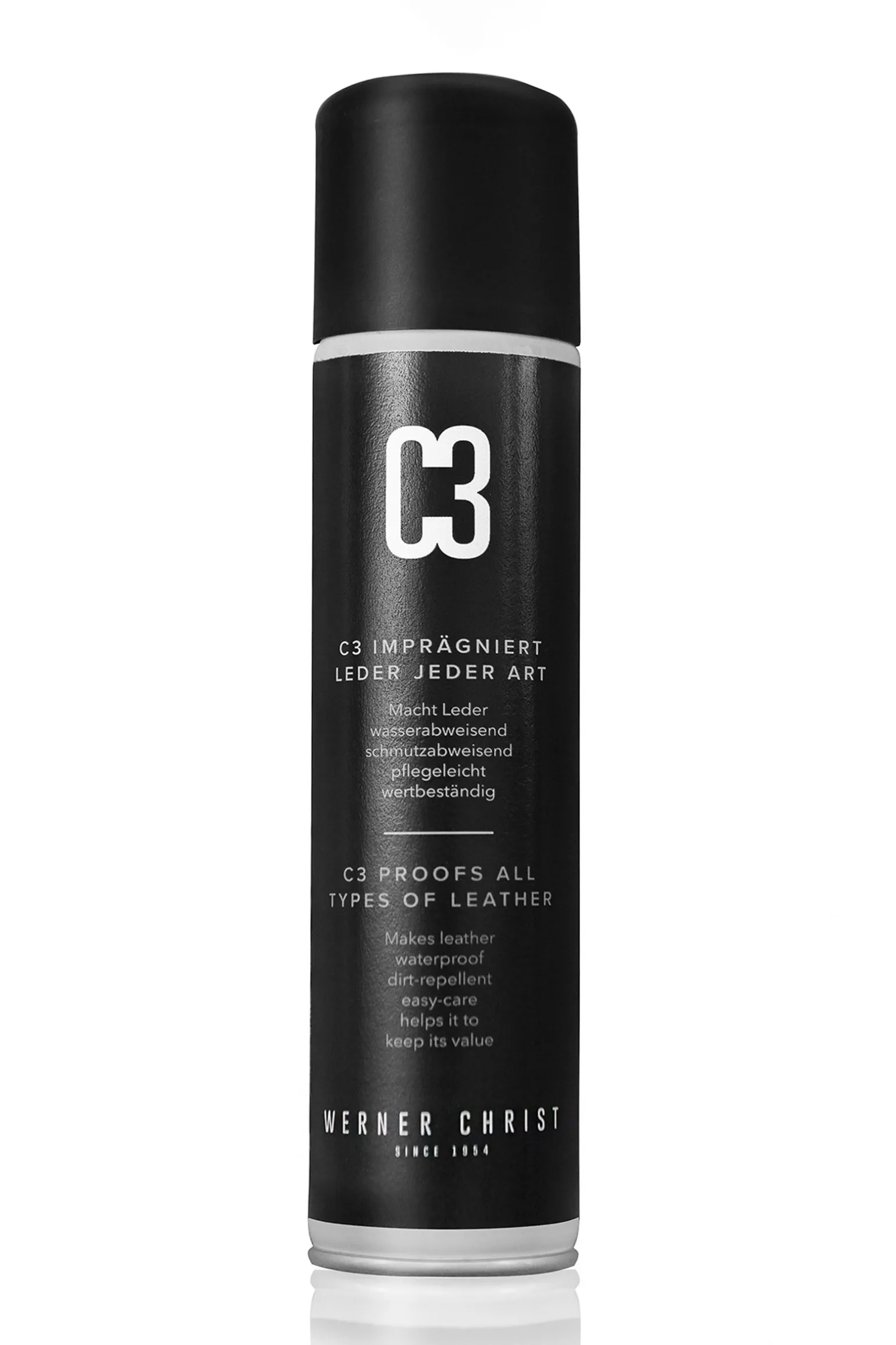 Nur ein gut imprägniertes Leder ist pflegeleicht, denn es ist schmutzunempfindlicher, und Flecken lassen sich meist leichter entfernen. Es behält länger seine Schönheit und somit seinen Wert. CHRIST C3 schützt Leder jeder Art weitestgehend vor Wasser und verschmutzenden Flüssigkeiten. Die äußeren Fasern werden von den Imprägnierstoffen umhüllt und dadurch geschützt. Die Atmungsaktivität, die durch die Hautporen erfolgt, bleibt dabei voll erhalten.