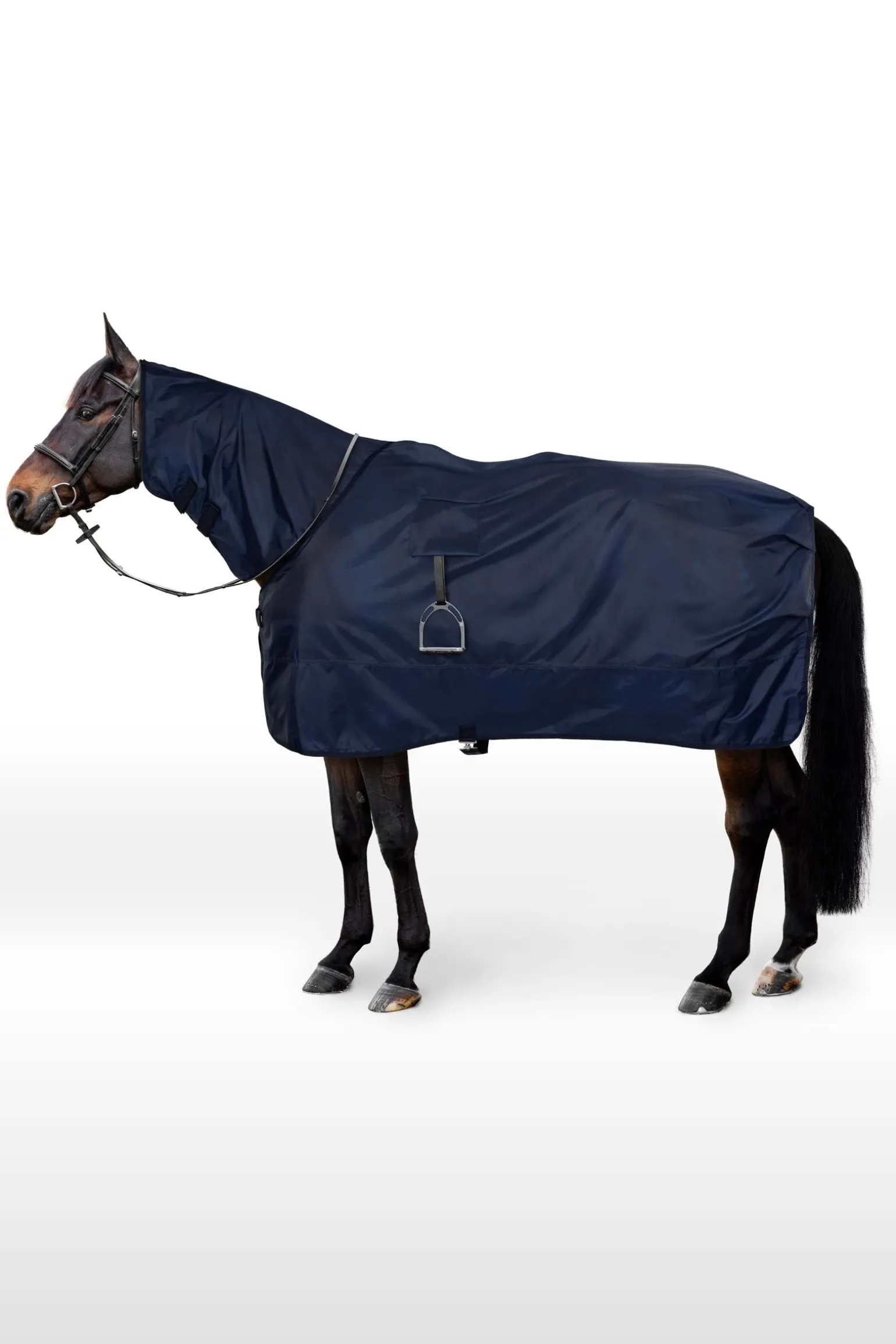 Für einen kompletten Schutz bei jedem sommerlichen Regenschauer sorgt diese Nierendecke. Das Design ermöglicht Luftstrom und kühlen Komfort und schützt Ihr Pferd mit einer leichten, wasserabweisenden, winddichten Schicht. Auf der Rückseite sind Schlitze angebracht, um das Steigbügel anzubringen, sodass Sie Ihren wertvollen Sattel schützen können.