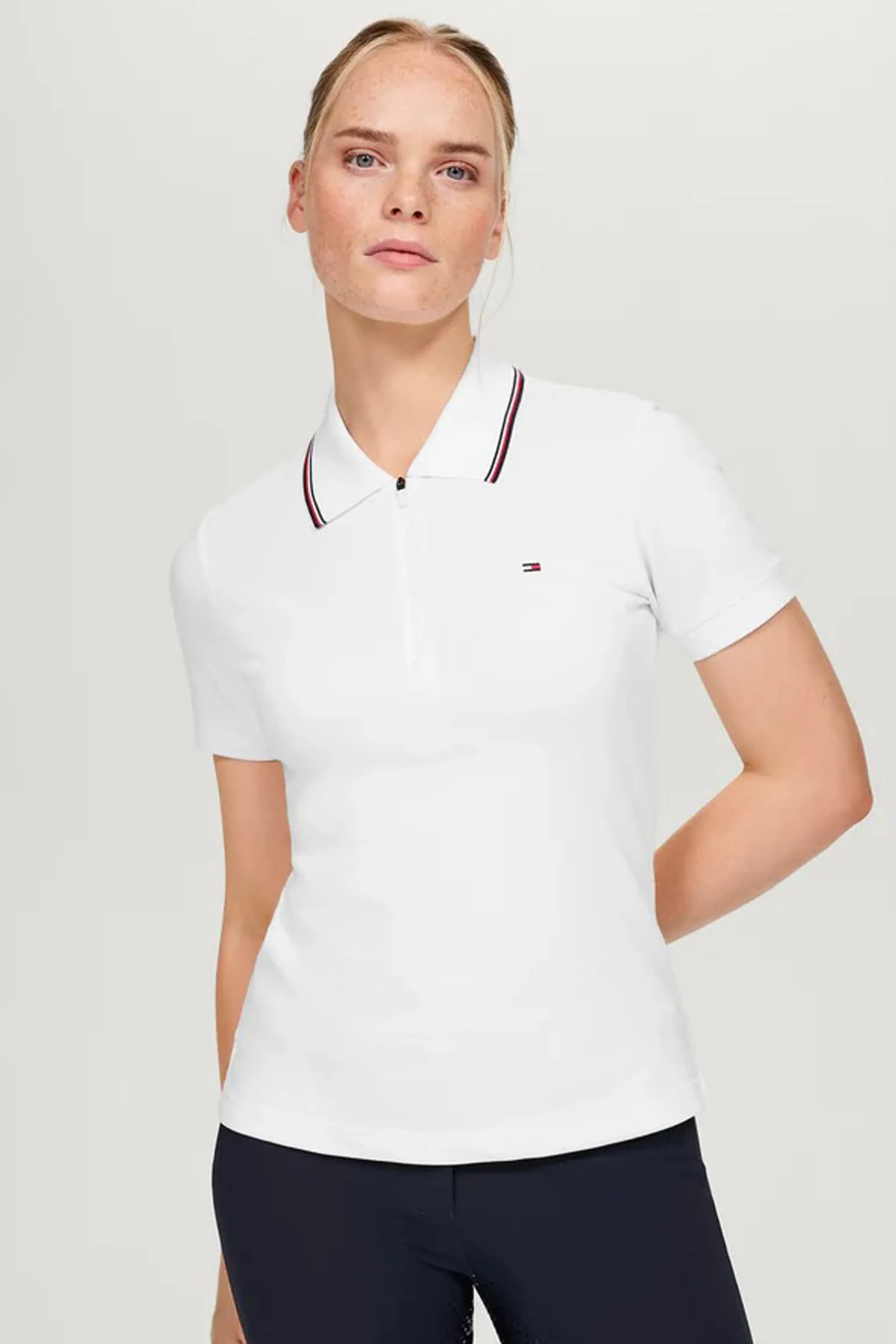 Entfalte deinen sportlichen Spirit mit dem Damen-Polo aus Baumwollpiqué – mit technischer Oberfläche und Stretch für unvergleichlichen Komfort. Ein praktischer Reißverschluss sorgt für einfaches An- und Ausziehen, und die Kombination aus klassischem Polo-Look und sportlich-technischem Material macht das schmal geschnittene Polo zum perfekten Mix aus Stil und Funktion. Zeig, was in dir steckt – im Sattel und darüber hinaus!