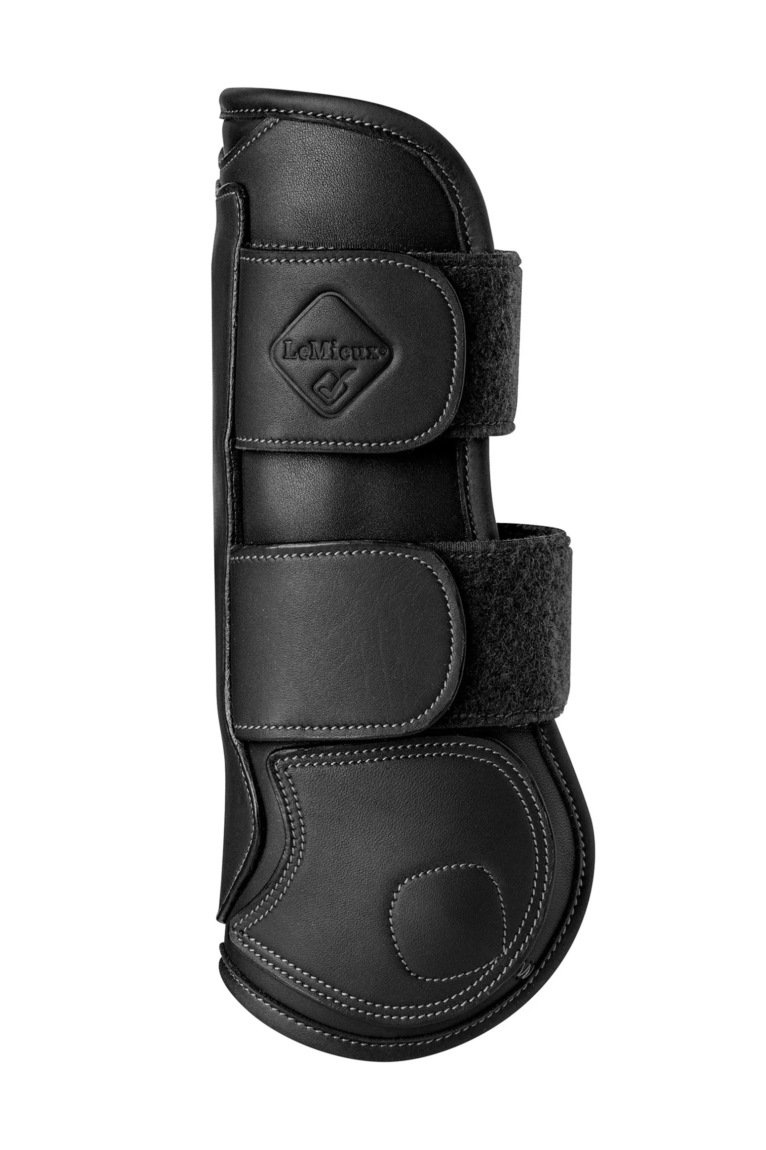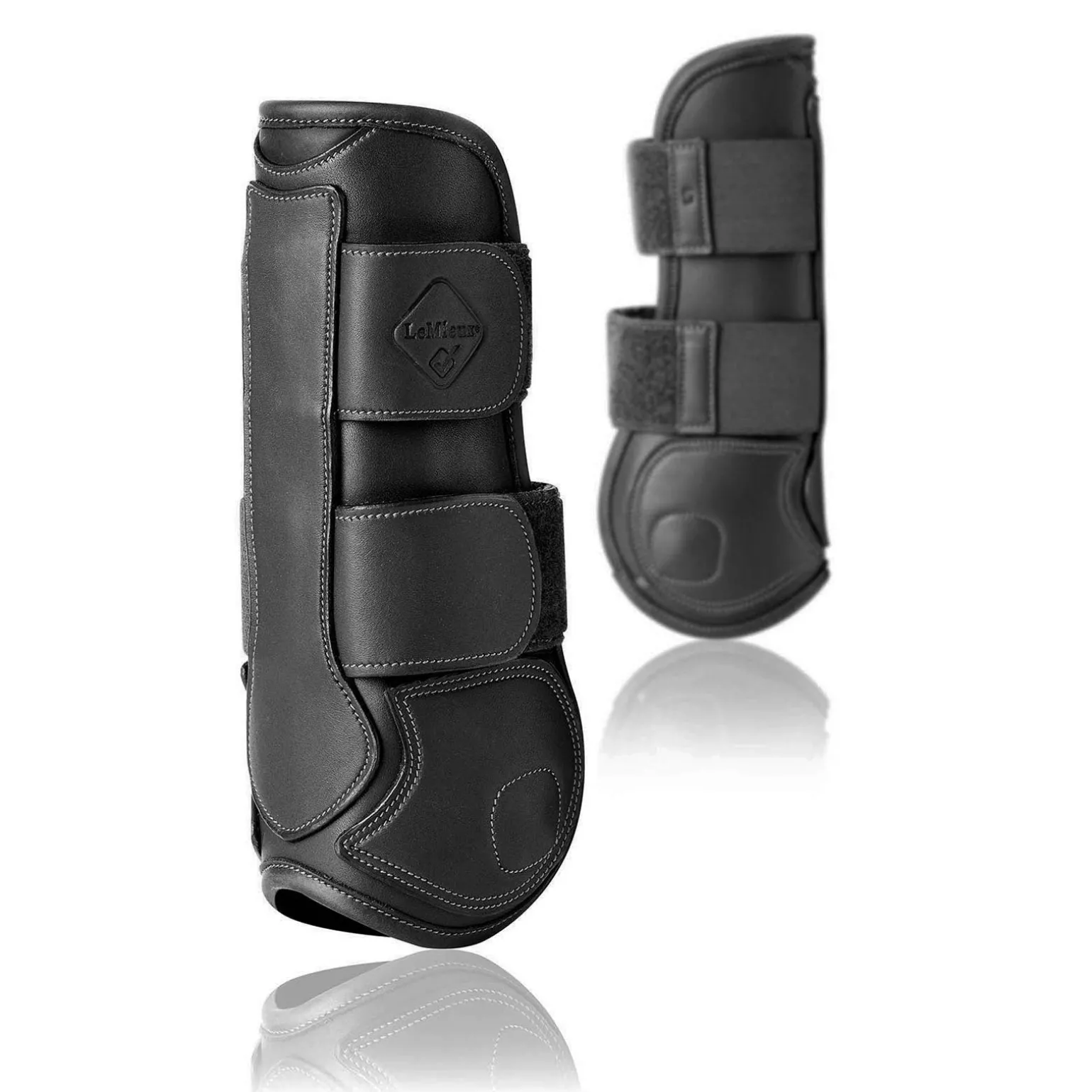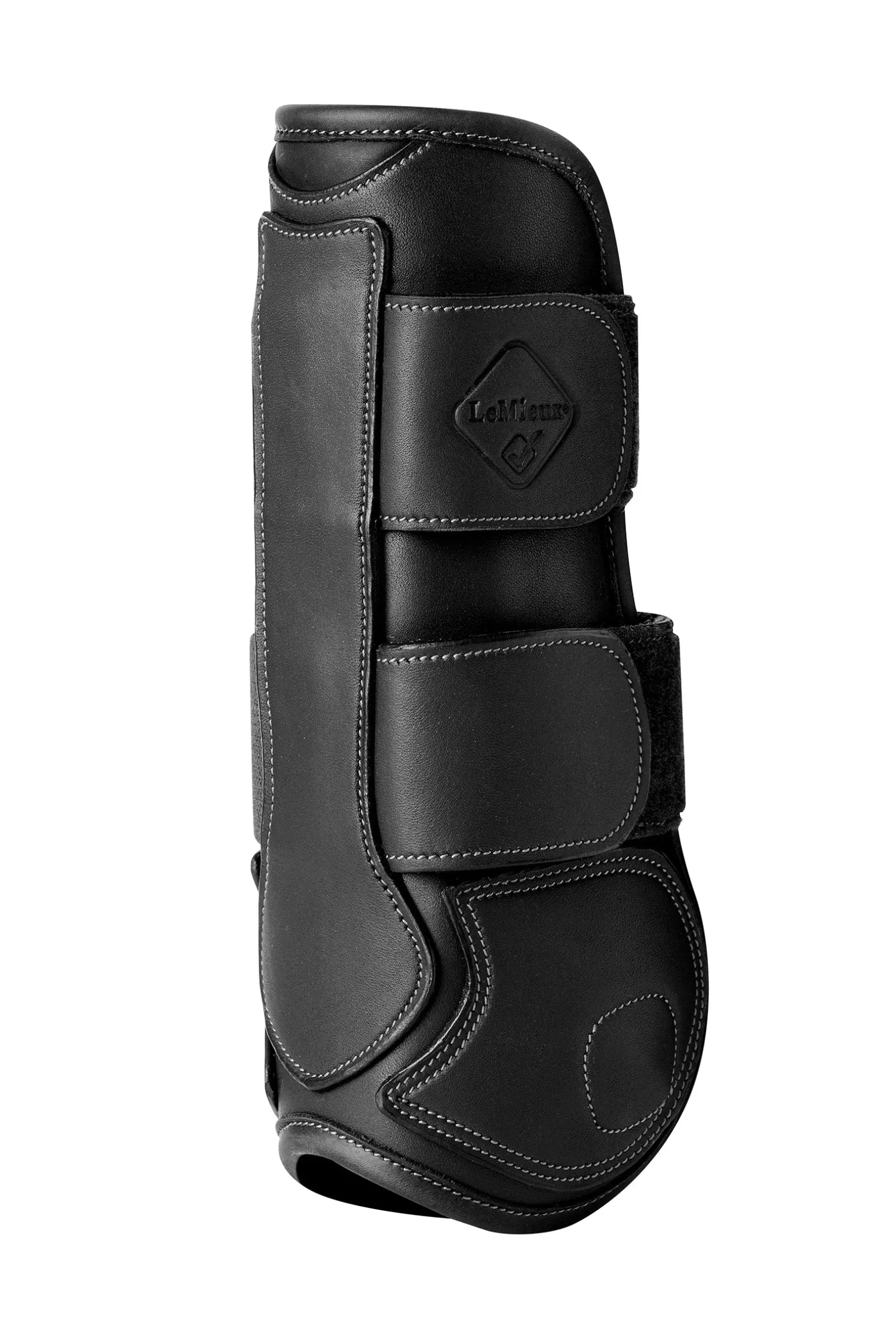Hergestellt aus hochwertigem, weichen Leder, das sich hervorragend an das Bein anpasst. Die Details der Nähte definieren die wichtigsten anatomischen Abschnitte, während die weich geformte Oberseite ausgeschnitten ist, um die Sehne beim Springen nicht einzuschränken.