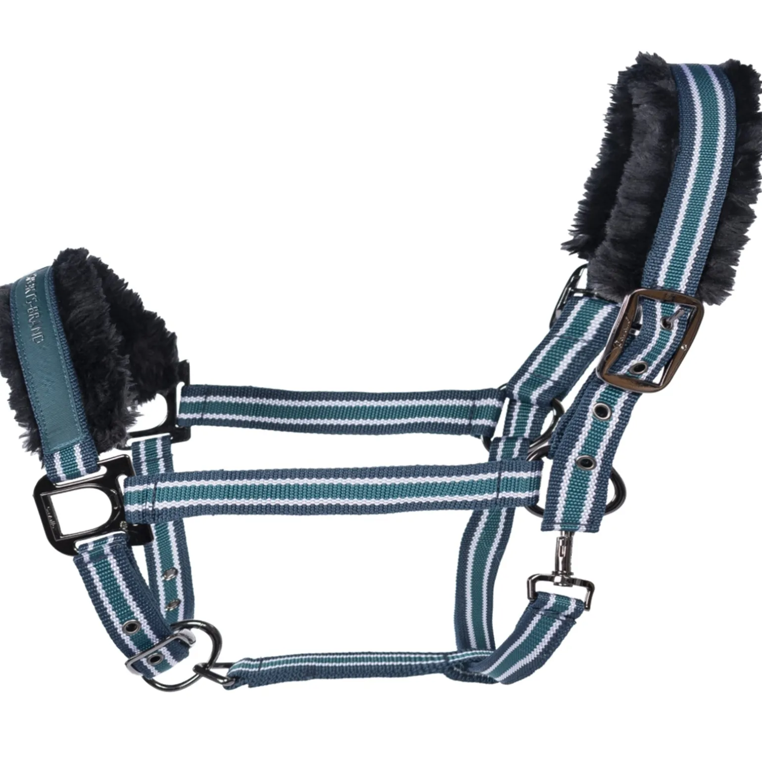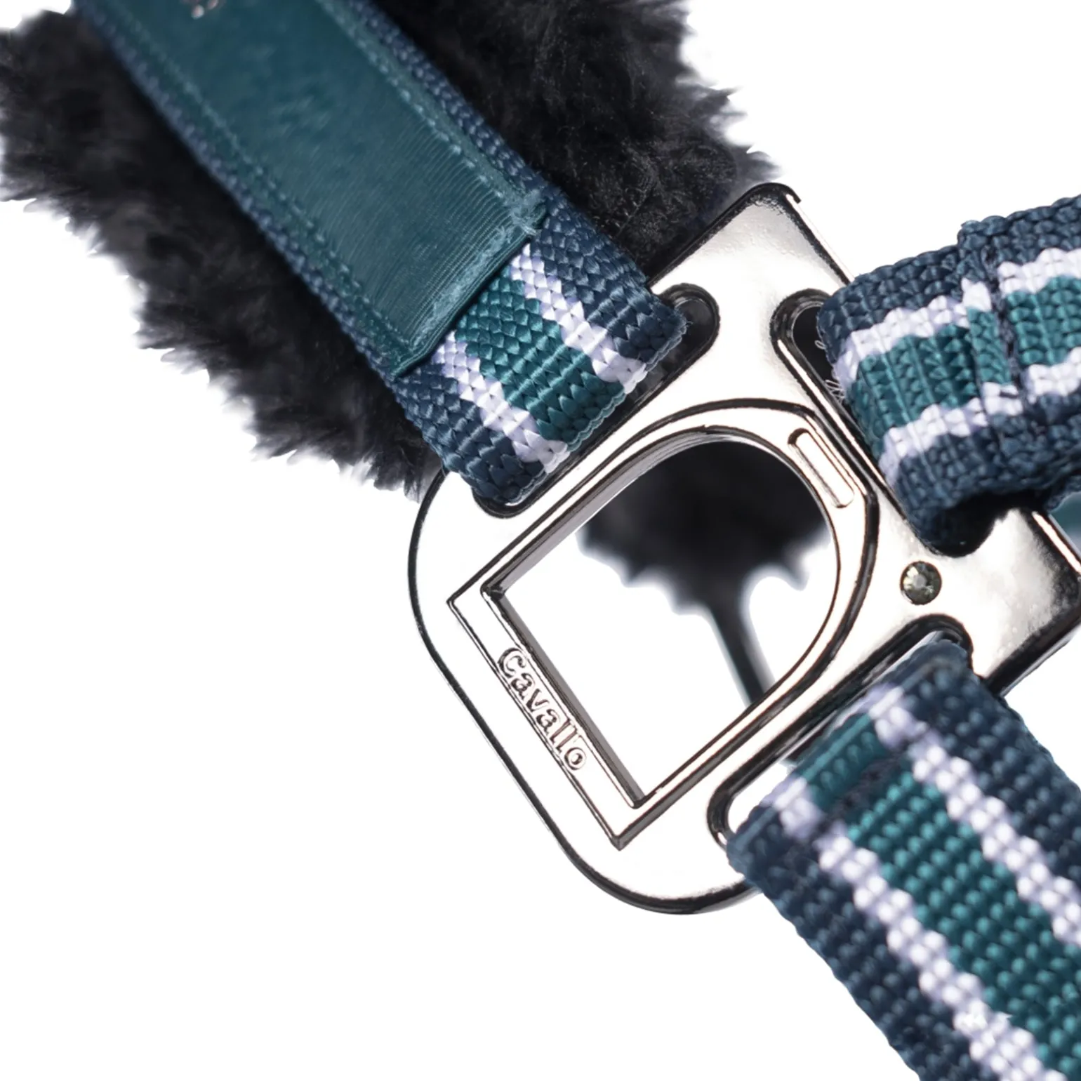 Angenehm weiches Cavallo Halfter Helia mit abnehmbarer Kunstfell Polsterung, Cavallo Logo und Strasssteinen an den Schnallen.