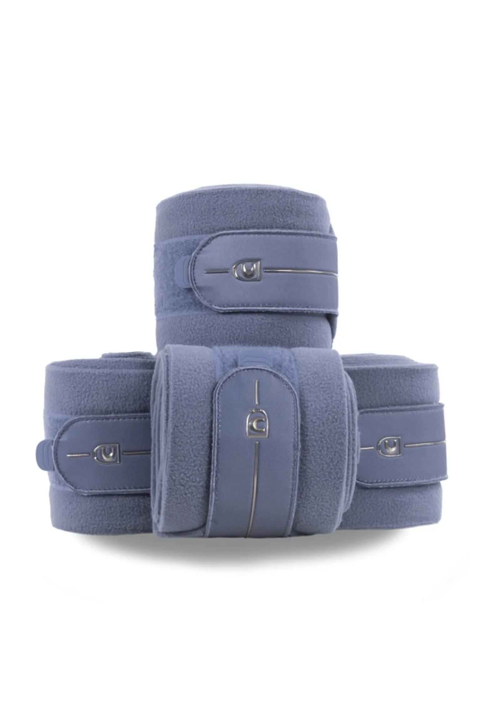 Bandagen aus hochwertigem Antipilling Fleece. Lange Klettflächen an den Enden sorgen für einen sicheren Halt am Pferdebein. Der Klettverschluss ist mit einem schimmernden Logoprint in Gunmetal Optik versehen. Das 4er Set ist in einer recycelten und praktischen Designtasche mit Reißverschluss und Griff verpackt. Perfekt für die Aufbewahrung und den Transport. Die Länge der Bandage beträgt 3,5m und die Breite 11cm.
