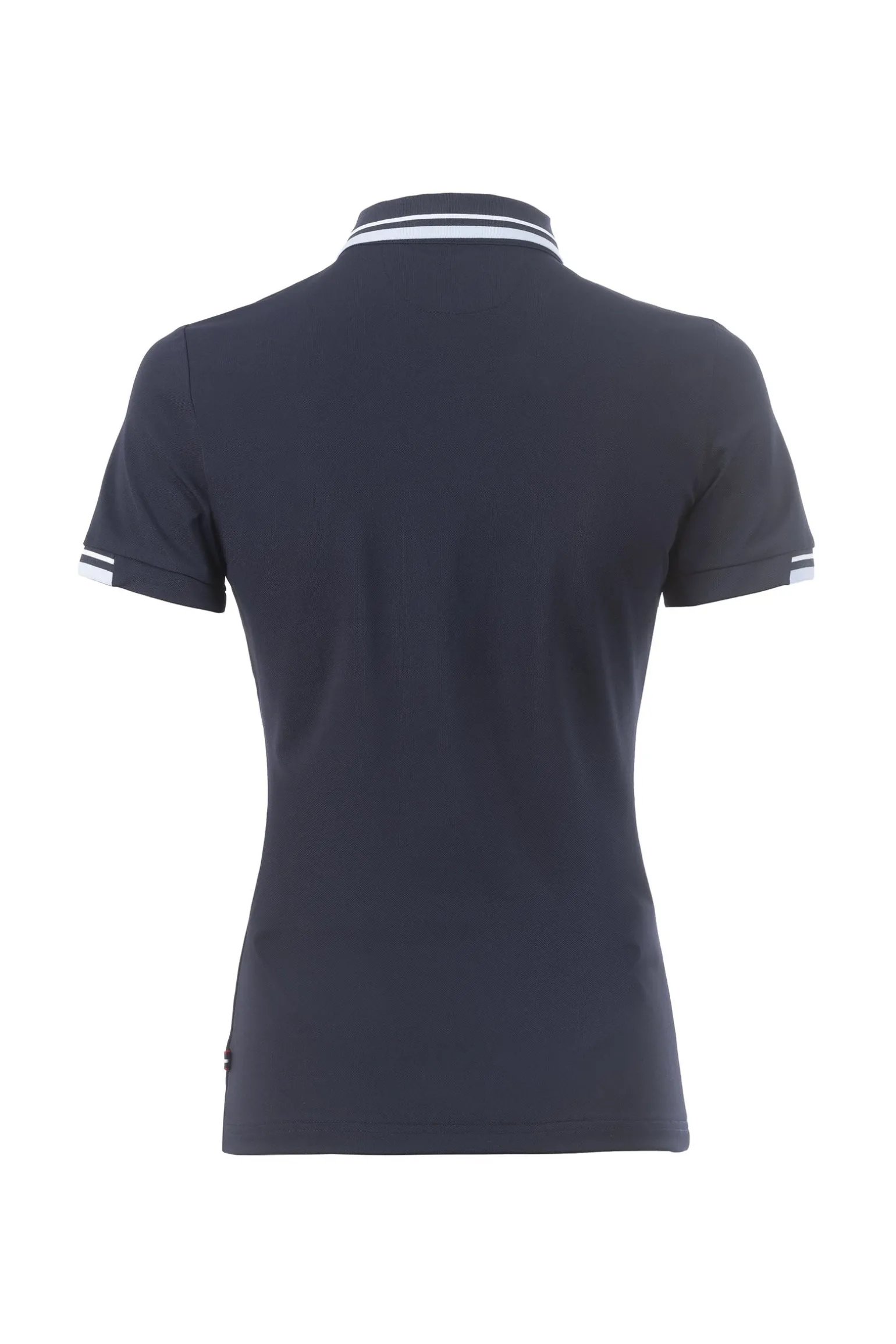 Das Cavallo Cavalnehle Damen-Funktions-Poloshirt ist ein sportliches und stilvolles Poloshirt aus funktionalem Piquéstoff. Es verfügt über einen gerippten Kragen mit kontrastierenden Streifen sowie dunkelblaue Knöpfe mit weißem Cavallo-Logo-Schriftzug auf der Knopfleiste. Die Ärmelabschlüsse sind mit eingesetztem Rippstoff und kontrastierenden Streifen versehen und verleihen dem Shirt eine dynamische Optik. Ein Cavallo-Steigbügel-Print in mattem Metall-Look auf der linken Brust rundet das Design ab. Perfekt für Reiten und Freizeit.