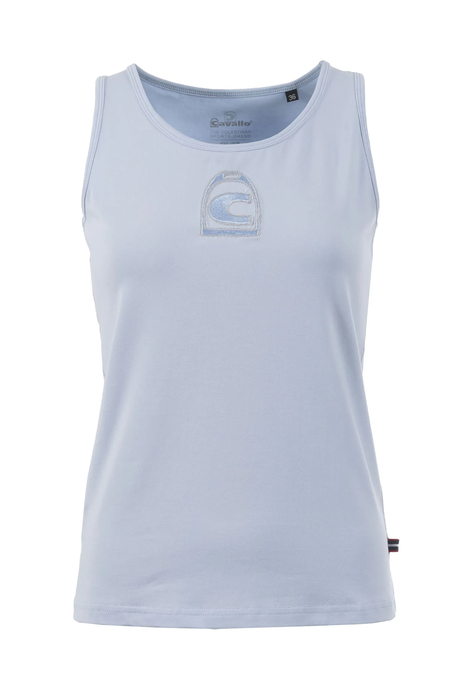 Das Cavallo Cavalnerys Damen-Top ist ein stilvolles und bequemes bi-elastisches Top aus Baumwolljersey. Mit einer großen, tonalen Cavallo-Steigbügelstickerei mit schimmernder silberner Umrandung auf der Brust verleiht es einen eleganten Touch. Schimmernde silberne Ziernähte entlang der Seitennähte unterstreichen die edle Optik. Ein Cavallo-Steigbügel-Print im Silber-Look in der Rückenmitte rundet das Design ab und macht dieses Top zur perfekten Kombination aus Stil und Funktionalität für den Alltag und das Reiten.
