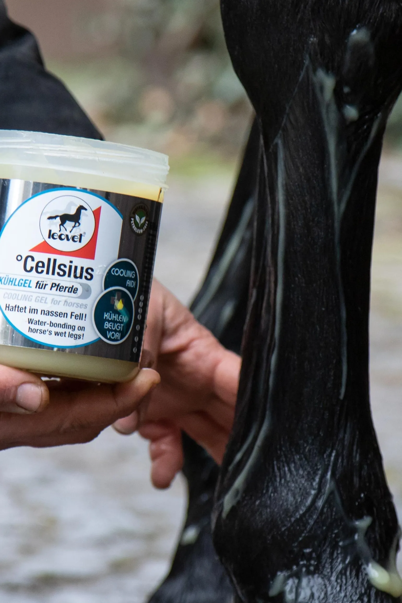 Um eine möglichst langanhaltende Kühlung zu erreichen, sollte °Cellsius auf das nasse Pferdebein aufgetragen und einmassiert werden. Durch die einfache Handhabung eignet sich °Cellsius nach jeder trainingsbedingten Belastung zur beschleunigten Regeneration und wirkt vorbeugend zum Schutz der wertvollen Pferdebeine.