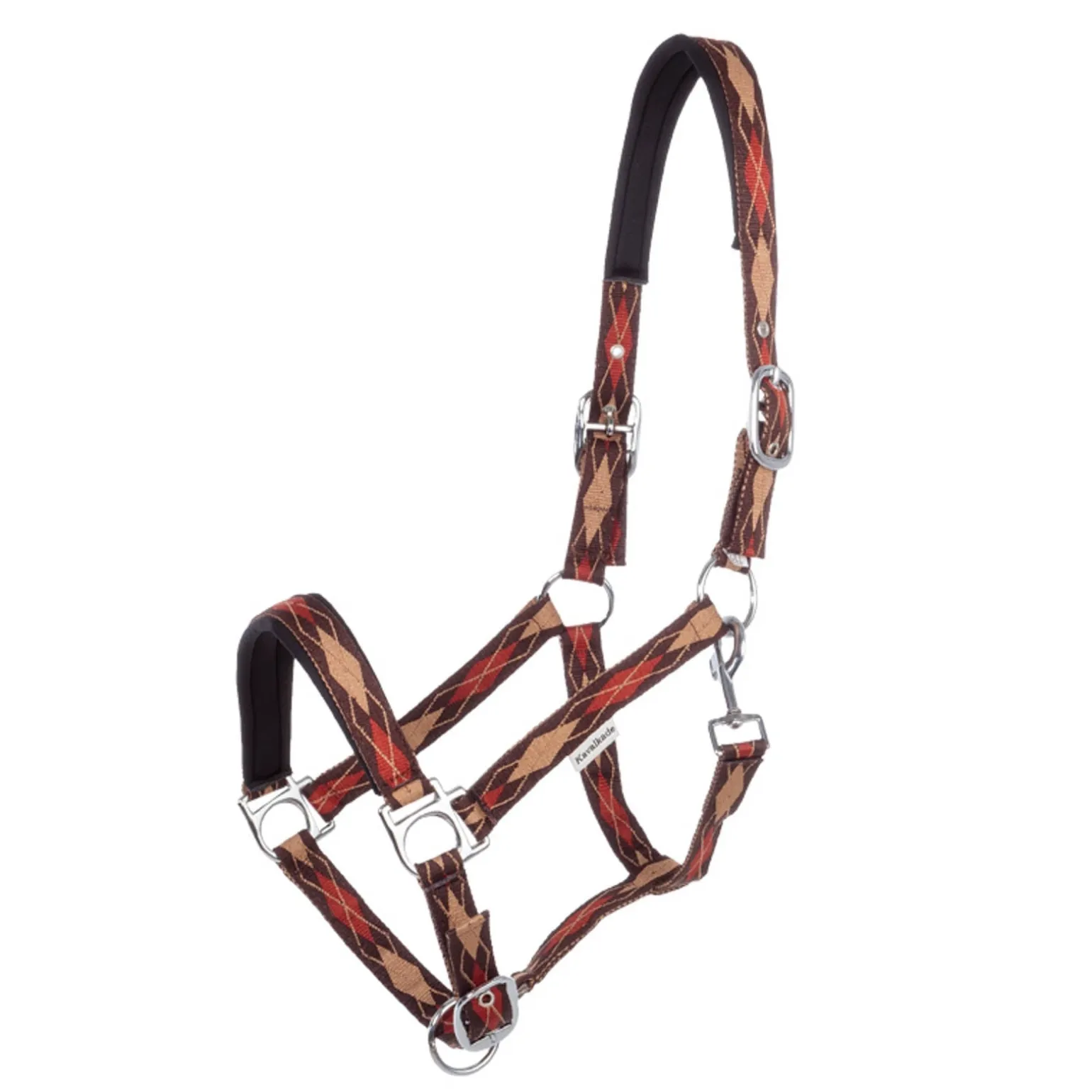 Das Halfter „Classic Raute“ mit seinen modernen Farben im Karomuster ist ein toller Blickfang auf jedem Pferdekopf. Das Genick und die Nase sind weich gepolstert. Für einen perfekten Sitz kann das Halfter beidseitig sowie unten verstellt werden. Die Beschläge sind in silber.