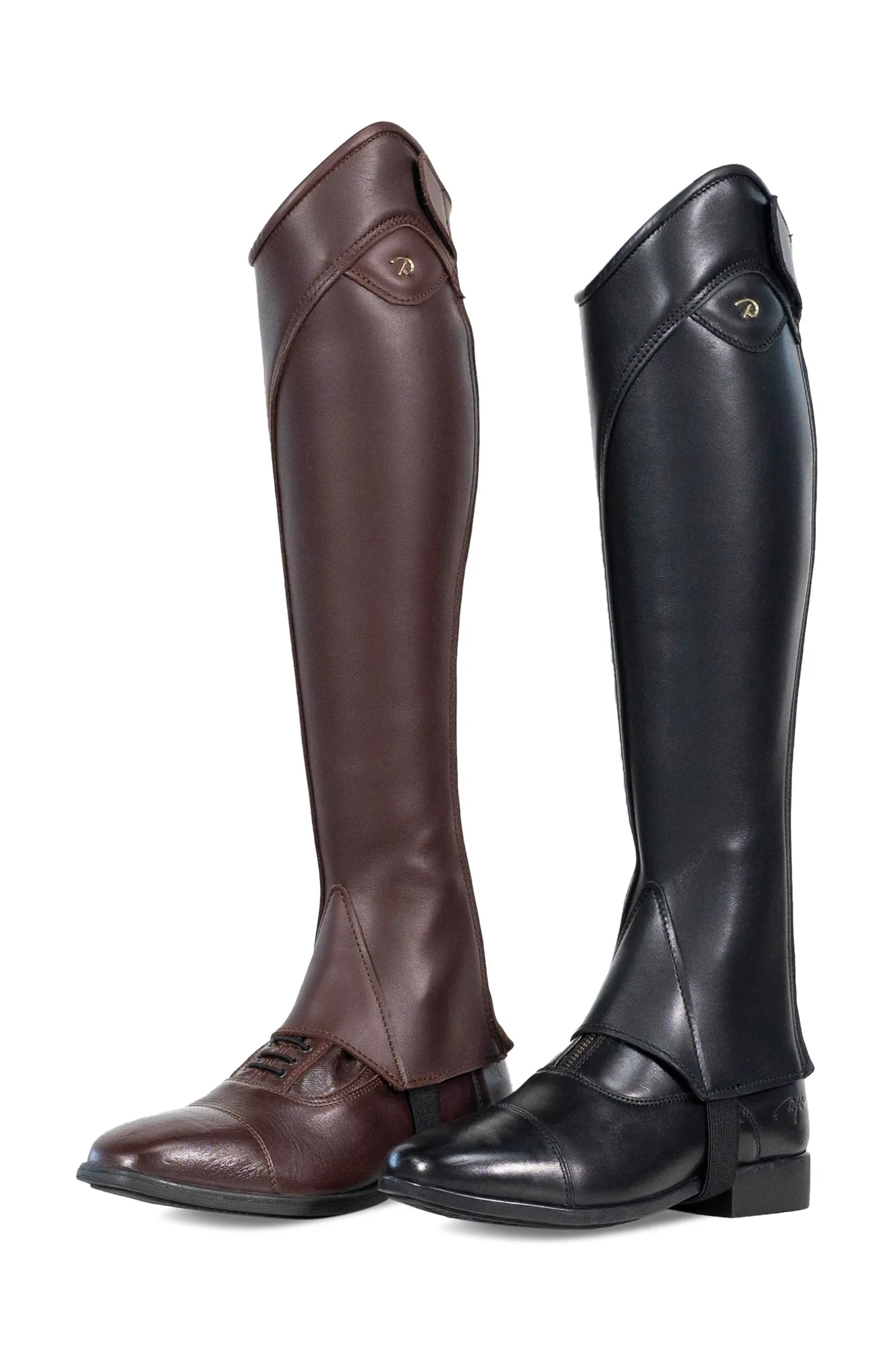 Diese Minichaps sind speziell für eine langlebige Leistung entwickelt und damit ein unverzichtbarer Bestandteil deiner Reitausrüstung für Turniere. Sie bieten einen sicheren und bequemen Sitz und gewährleisten gleichzeitig festen Halt im Sattel, was optimale Leistung und ein elegantes Erscheinungsbild ermöglicht. Dank des elastischen Streifens entlang der Beinrückseite sowie der elastischen Bänder unter Knie und Fuß bieten sie Flexibilität und passen sich deinen Bewegungen an. Der Verschluss mit Schutzpolster und eingebrachtem Klettband sorgt für einfache Anpassung, sicheren Sitz und optimalen Komfort.