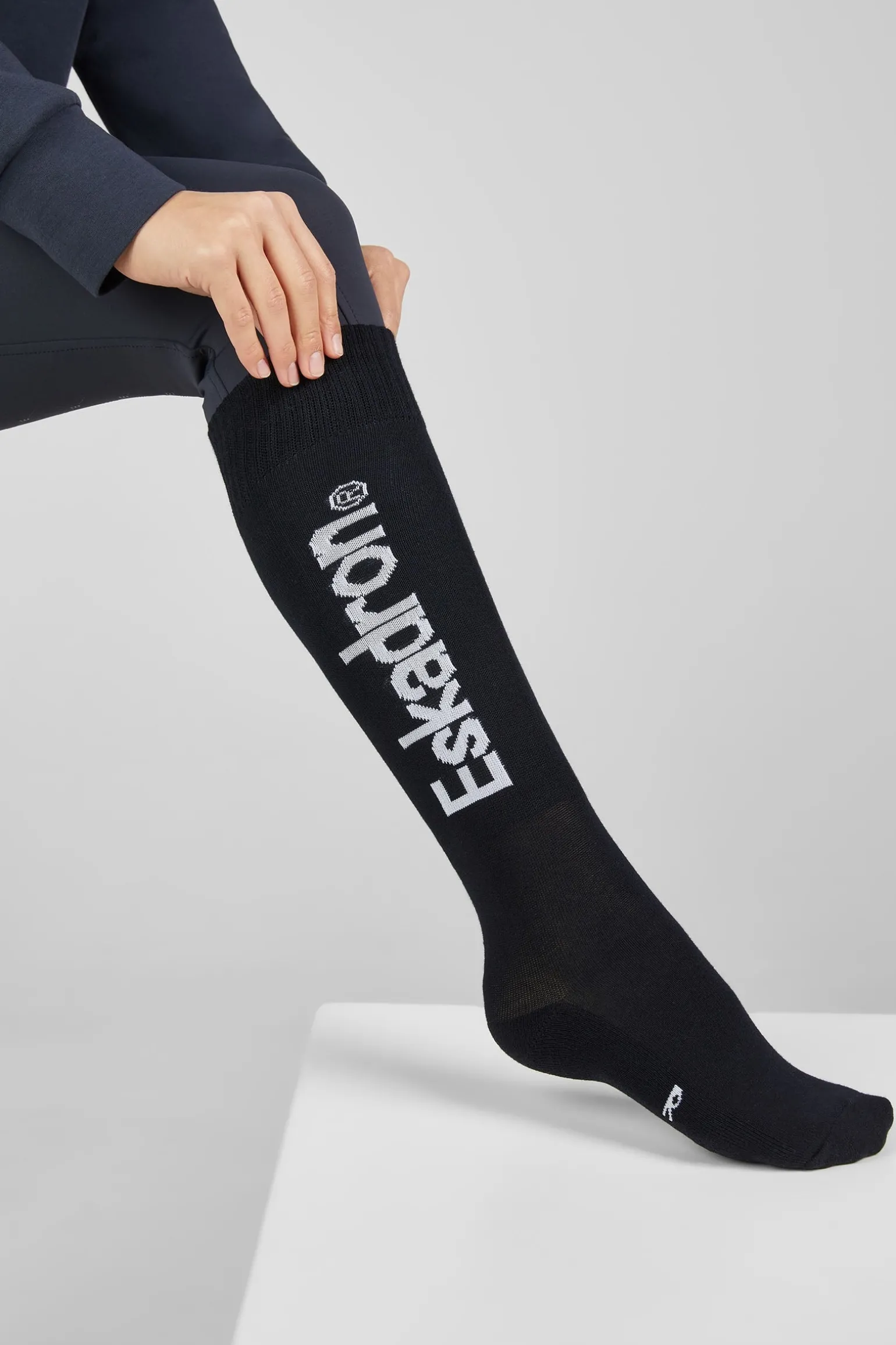 Die Eskadron Classic Sports SS25 Kniestrümpfe vereinen Komfort und Stil für den täglichen Reitsport. Aus weicher Baumwolle gefertigt, bieten sie eine bequeme und atmungsaktive Passform. Der charakteristische Eskadron-Webeinsatz an den Waden verleiht eine sportliche Optik, während das extrem weiche Fußbett den ganzen Tag über für Komfort sorgt. Perfekt für Training, Wettkampf oder den Alltag im Stall!