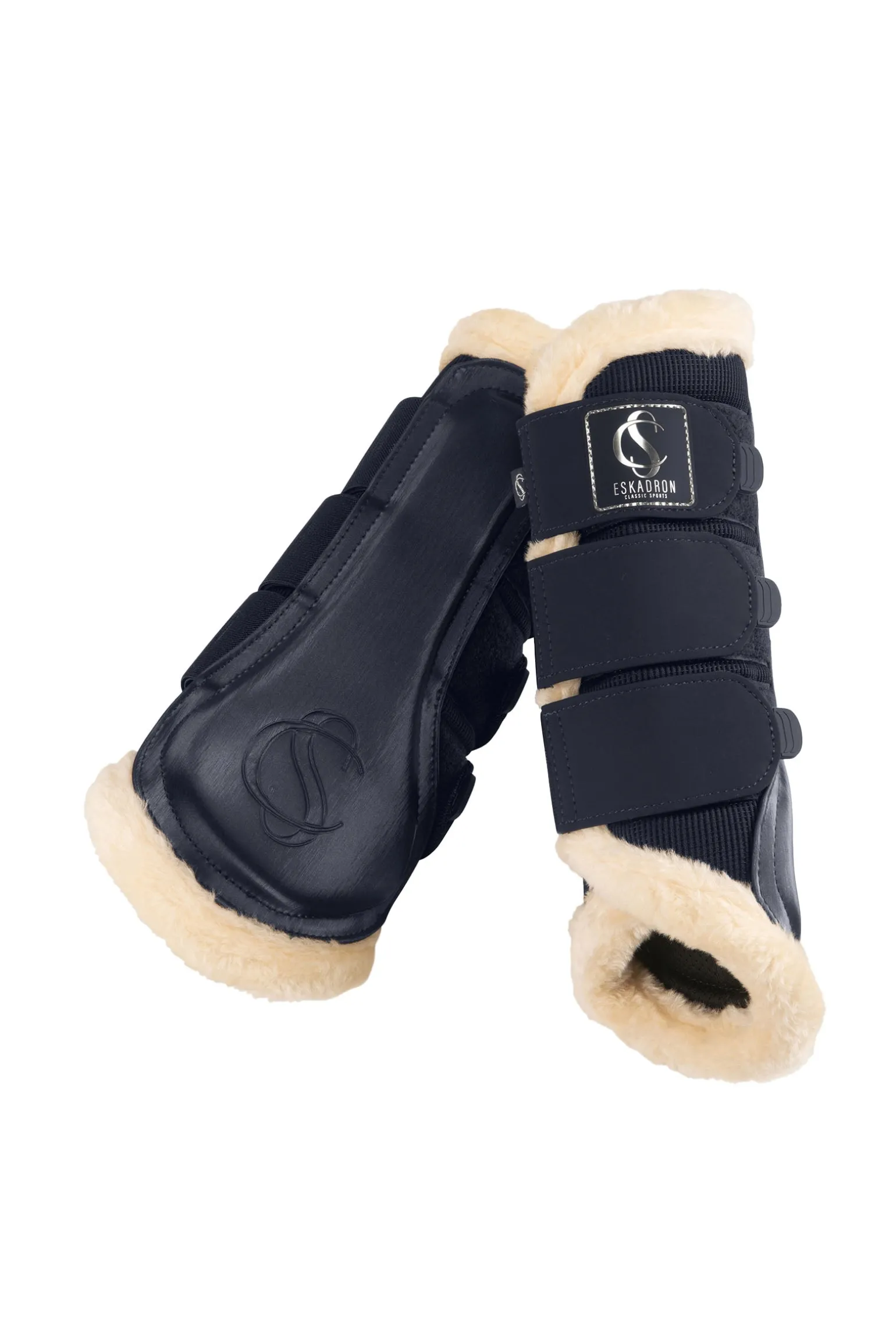 Die Eskadron Classic Sports SS25 Mesh Fauxfur Gamaschen vereinen Atmungsaktivität, Komfort und Schutz. Gefertigt aus innovativem dreidimensionalem mehrschichtigem Mesh mit weicher Kunstfell-Einfassung, bieten sie hervorragende Belüftung und eine angenehme Passform. Das stoßdämpfende und druckverteilende Design schützt die Beine deines Pferdes vor Belastung und Stößen. Eine robuste PU-Einlage mit Prägung verstärkt die Langlebigkeit, während elastische Klettverschlüsse mit Eskadron-Logo eine optimale Anpassung ermöglichen. Die Softshell-Klettabdeckung mit Classic Sports-Emblem verleiht eine stilvolle Note. Pflegeleicht und waschbar sind diese Gamaschen eine praktische und hochwertige Wahl für das tägliche Training und den Wettkampf.
