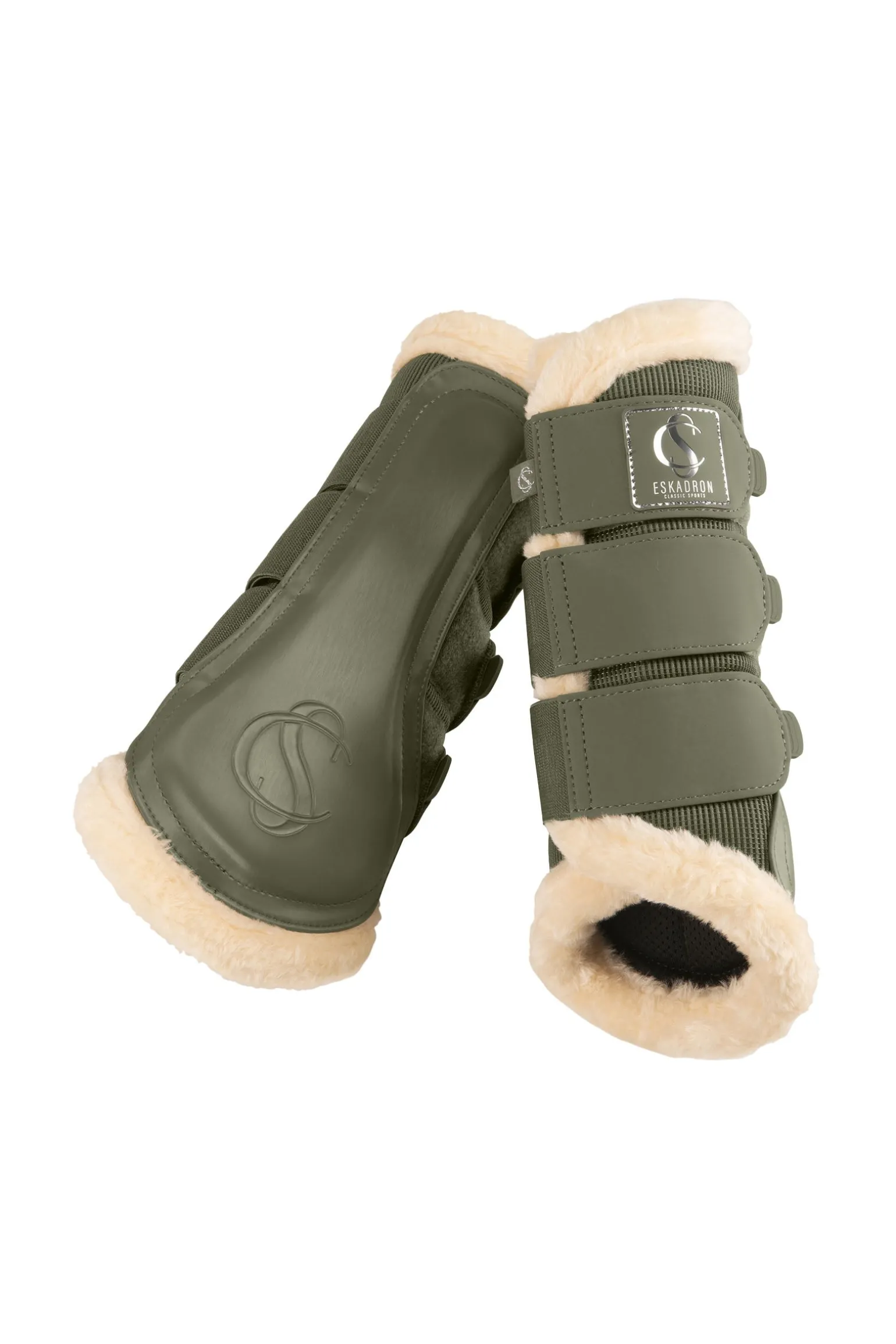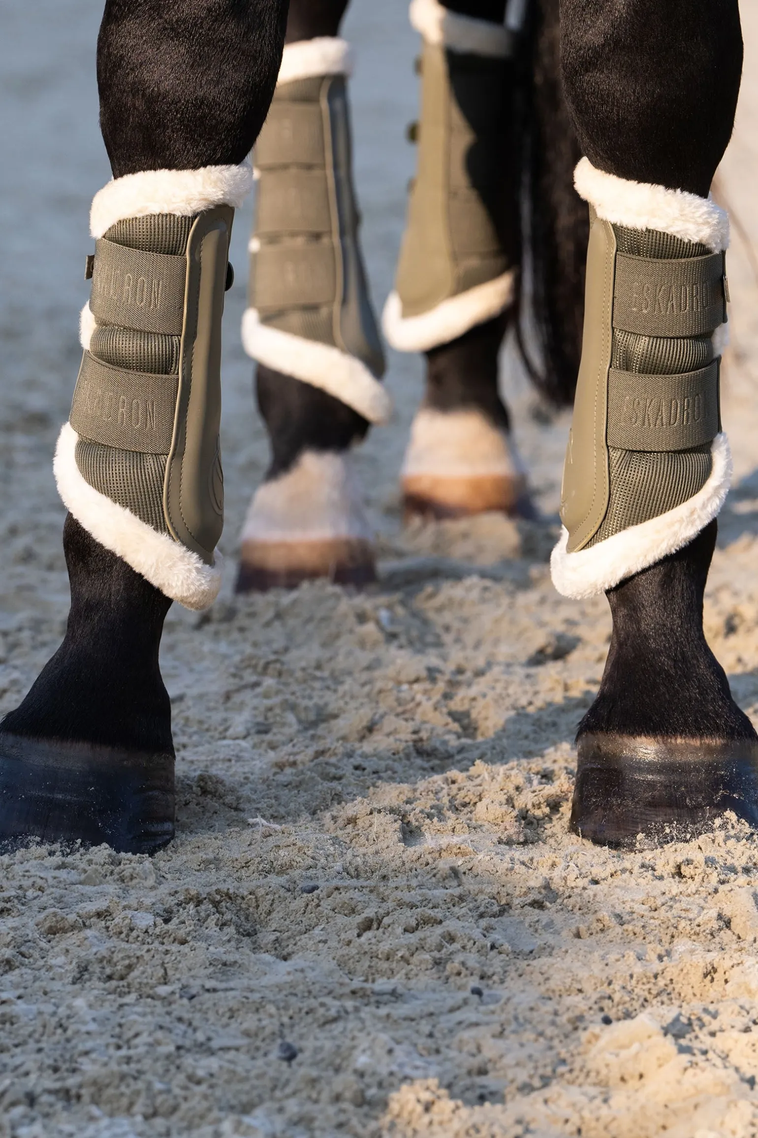 Die Eskadron Classic Sports SS25 Mesh Fauxfur Gamaschen vereinen Atmungsaktivität, Komfort und Schutz. Gefertigt aus innovativem dreidimensionalem mehrschichtigem Mesh mit weicher Kunstfell-Einfassung, bieten sie hervorragende Belüftung und eine angenehme Passform. Das stoßdämpfende und druckverteilende Design schützt die Beine deines Pferdes vor Belastung und Stößen. Eine robuste PU-Einlage mit Prägung verstärkt die Langlebigkeit, während elastische Klettverschlüsse mit Eskadron-Logo eine optimale Anpassung ermöglichen. Die Softshell-Klettabdeckung mit Classic Sports-Emblem verleiht eine stilvolle Note. Pflegeleicht und waschbar sind diese Gamaschen eine praktische und hochwertige Wahl für das tägliche Training und den Wettkampf.