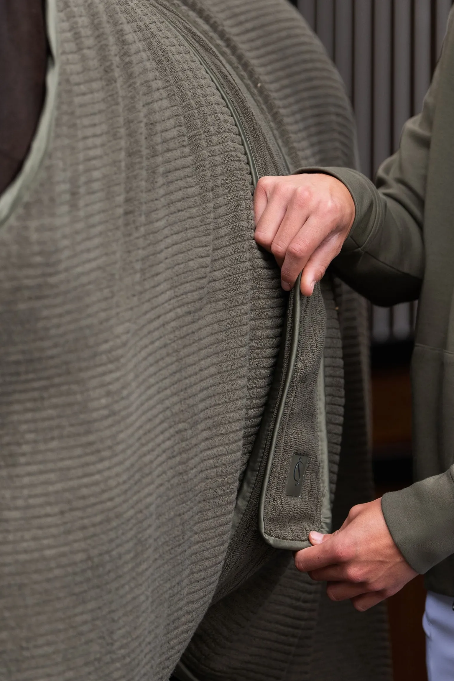 Die Eskadron Classic Sports SS25 Terry-Robe Abschwitzdecke vereint Komfort und Funktionalität. Hergestellt aus weichem Baumwoll-Frottee, ist sie atmungsaktiv und besonders saugfähig, um eine optimale Feuchtigkeitsregulierung für dein Pferd zu gewährleisten. Das Classic Sports Emblem und das Flaglabel auf der linken Seite verleihen der Decke eine stilvolle Note. Für eine sichere und verstellbare Passform verfügt die Decke über einen Bauchgurt sowie einen doppelten Brustverschluss mit Klettfixierung. Der integrierte Schweifriemen hält die Decke an Ort und Stelle und macht sie zu einer praktischen und hochwertigen Wahl für das Abkühlen nach dem Training sowie den Einsatz im Stall.