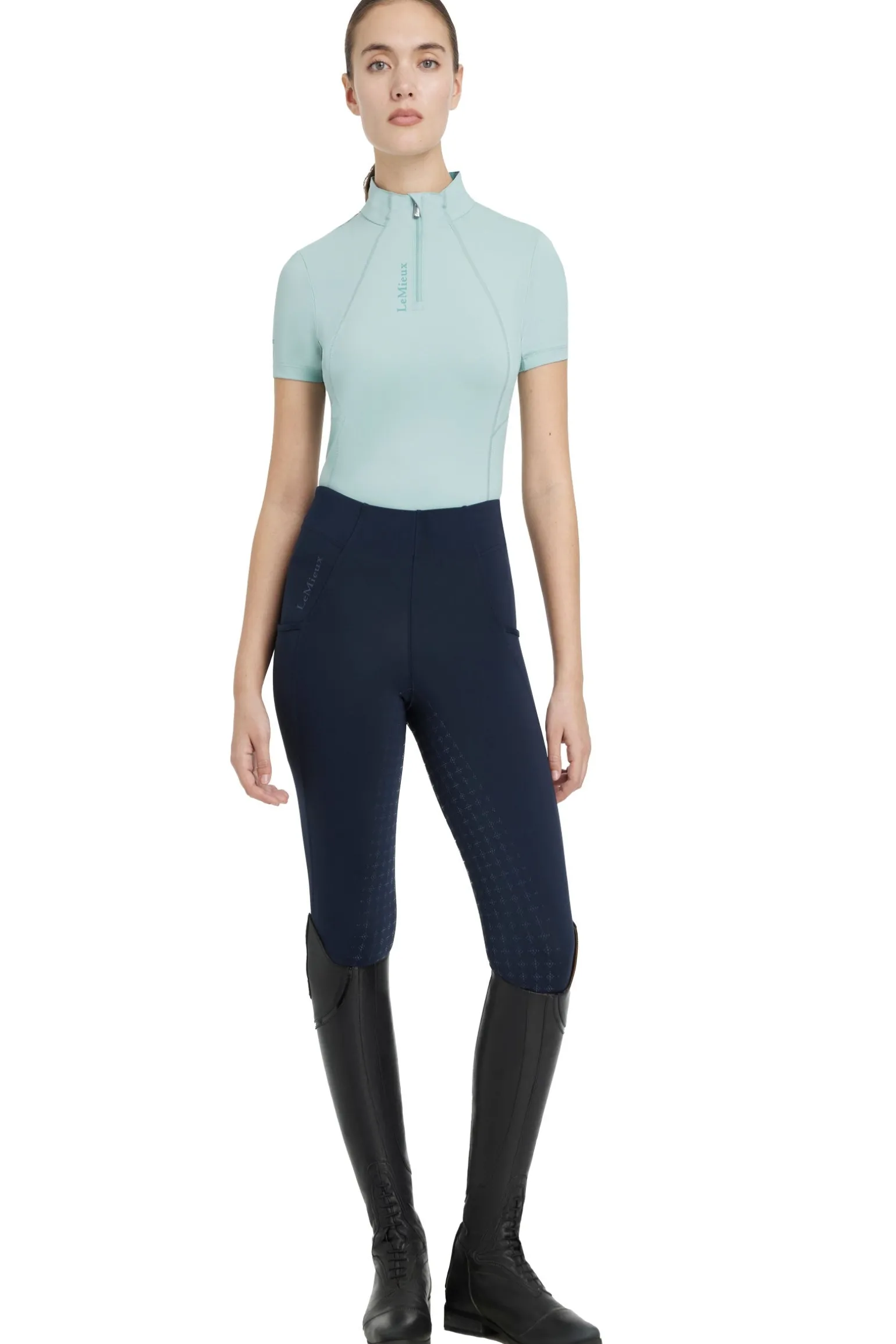 Dieses UV50+ Shirt mit viertel Reißverschluss ist für alles bereit. Sein technisches Gewebe reguliert die Körpertemperatur, belüftete Unterarme halten dich kühl und trocken. Der kontrastierende, matte Logodruck ist ein subtiles Zeichen für die Qualität, die du von LeMieux erwartest. Schweißableitend, antimikrobiell und mit 360°-Stretch für uneingeschränkten Komfort – es gibt nichts, was dieses funktionelle Shirt nicht kann. Der seidenweiche Stoff, die ultraweichen Nähte und die flachen Nähte reduzieren die Reibung und tragen unter einer Fleeceshirt, einer Jacke oder einer Weste nur minimal auf. Passend zur Classique-Kollektion in den beliebtesten LeMieux-Farben.
