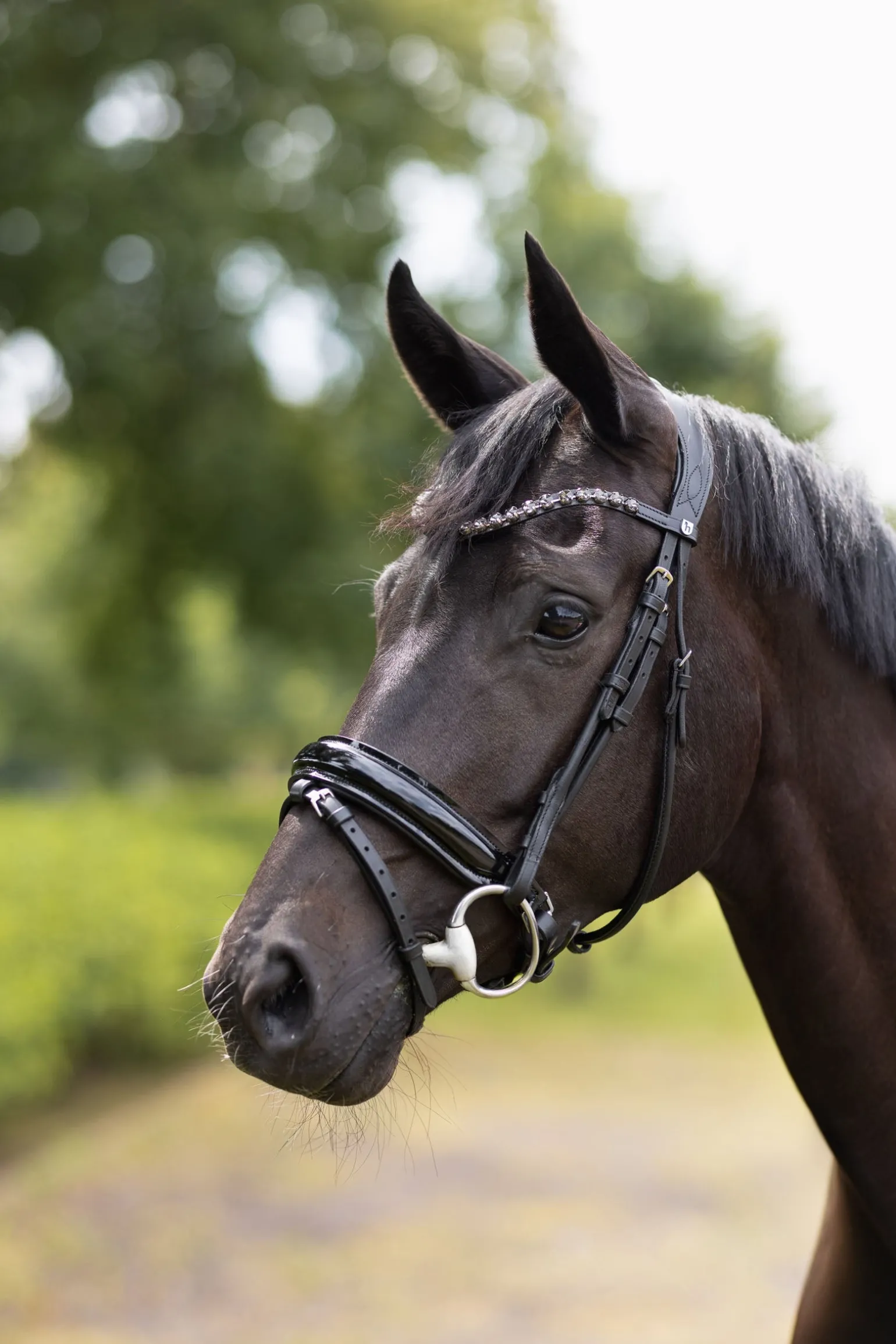 Die wunderschöne Trense Horze Clermont begeistert mit einem auffälligen Stirnriemen mit einer Reihe von großen Kristallen in einer geschmeidig wirkenden „U-“Form, der den natürlich schön geformten Pferdekopf unterstreicht.