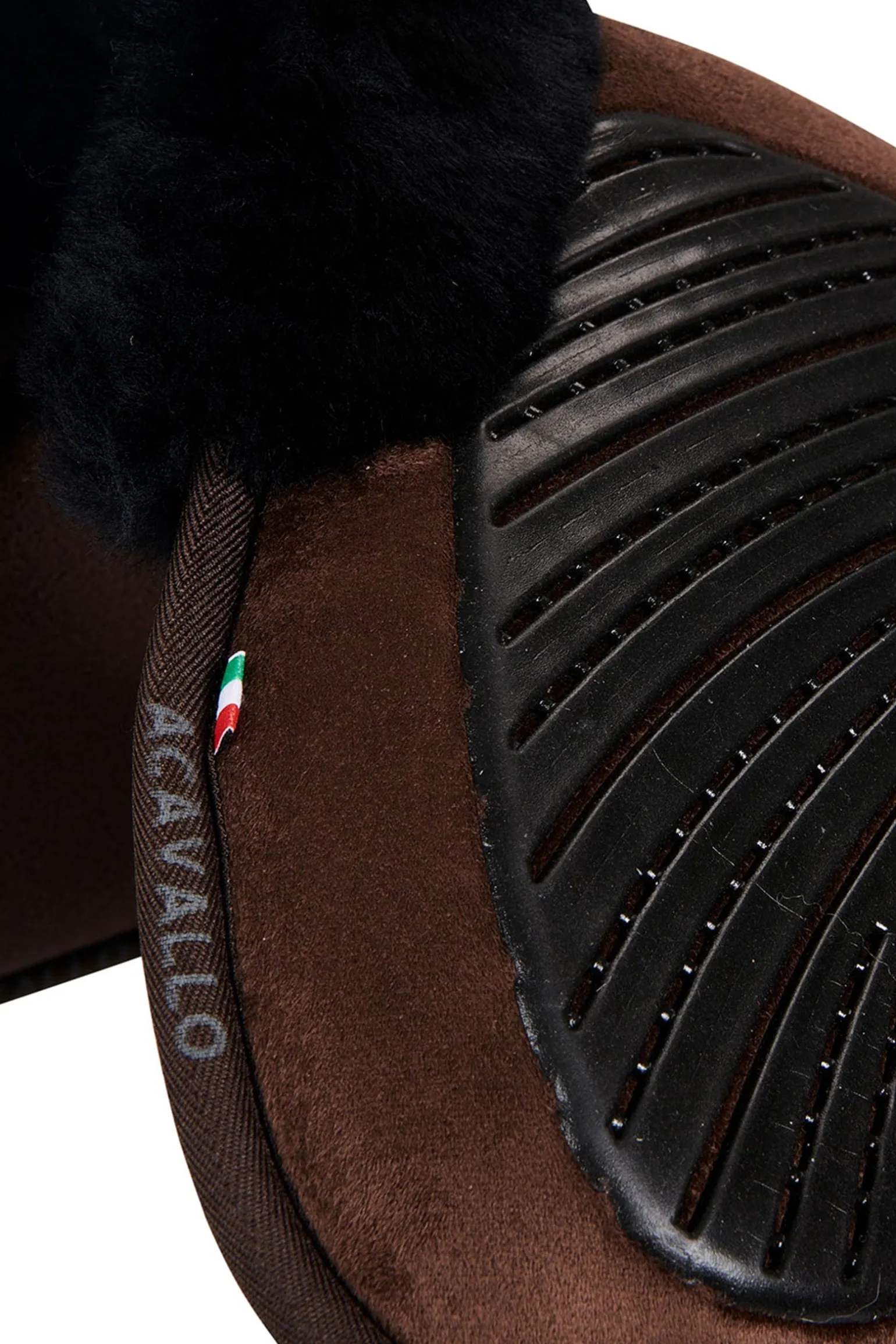 Das Pad ist im unteren Teil teilweise mit Acavallo-Lammfell bedeckt, einem natürlichen Material, das keine Allergien auslöst, sehr weich und empfindlich ist und sich perfekt eignet, um Scheuern, Abschürfungen und Blasen zu verhindern.