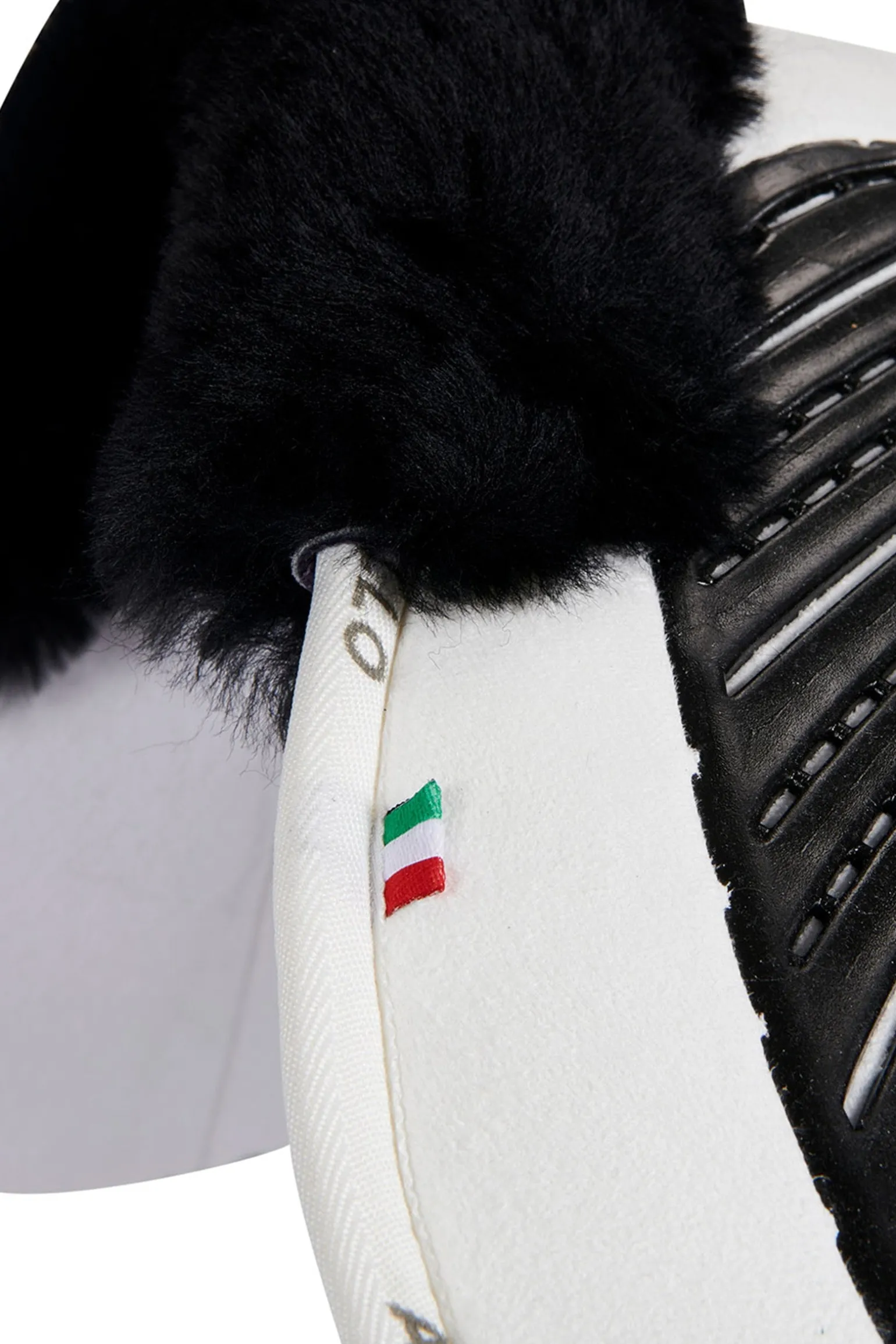 Das Pad ist im unteren Teil teilweise mit Acavallo-Lammfell bedeckt, einem natürlichen Material, das keine Allergien auslöst, sehr weich und empfindlich ist und sich perfekt eignet, um Scheuern, Abschürfungen und Blasen zu verhindern.