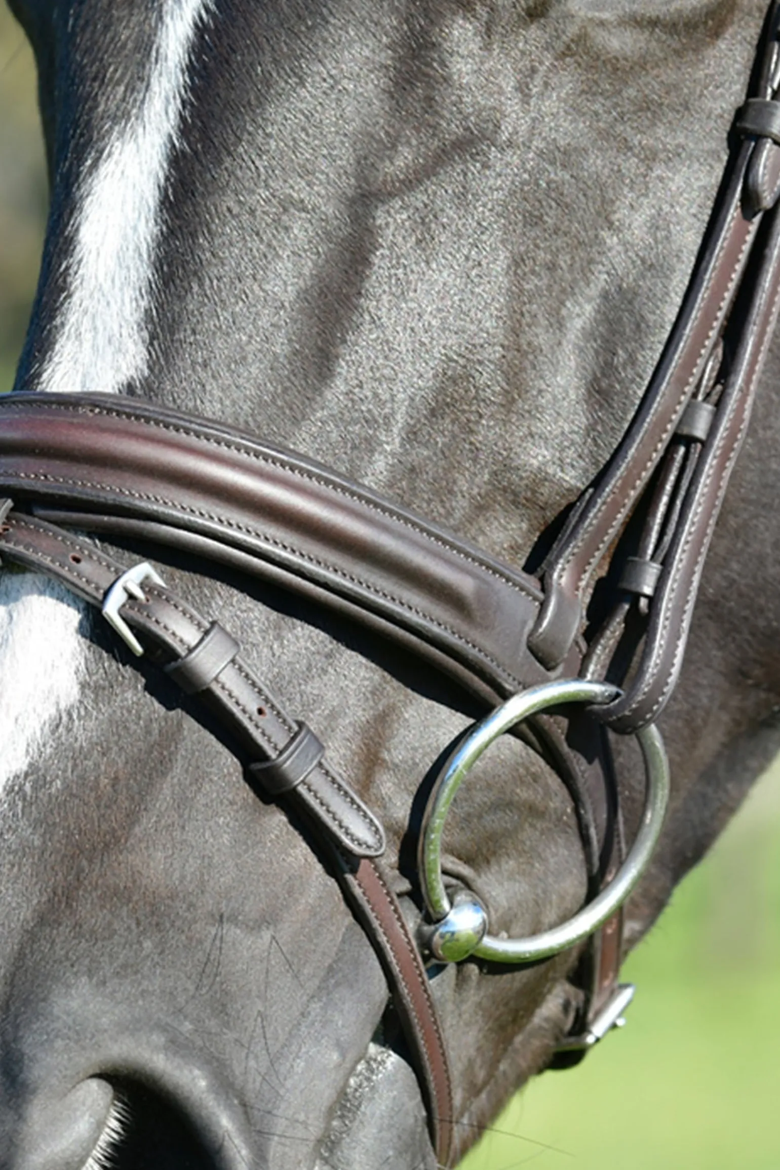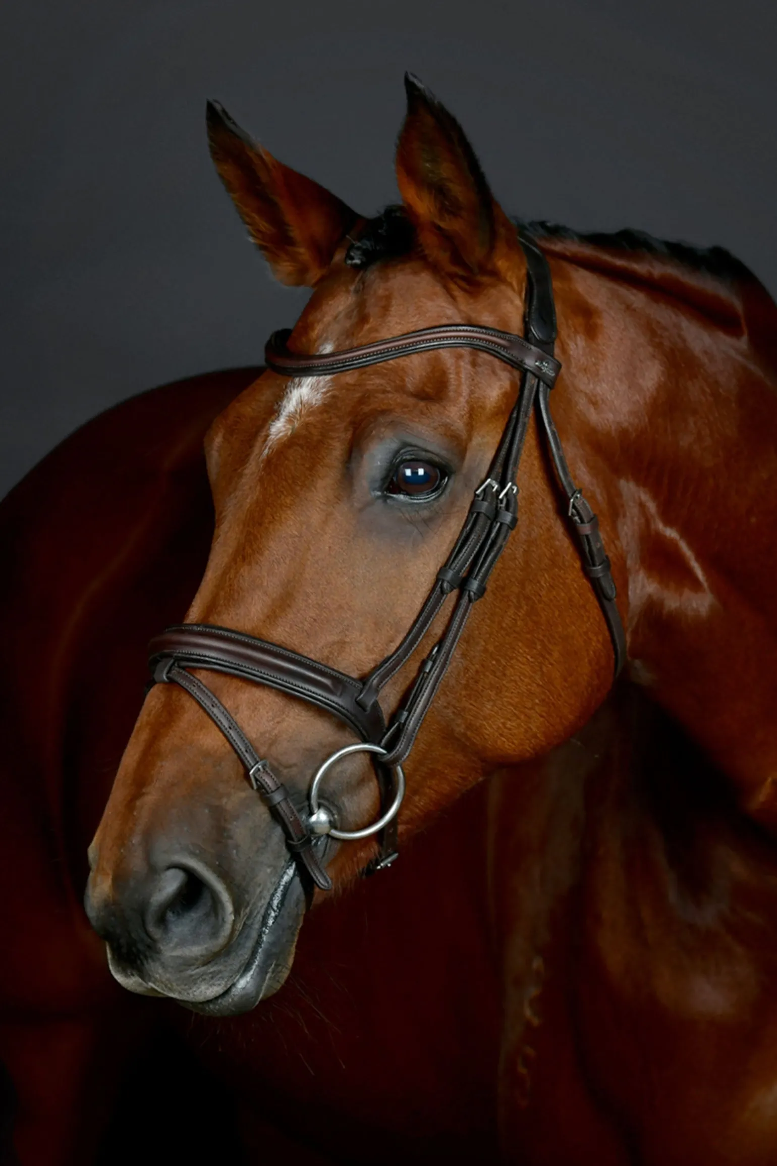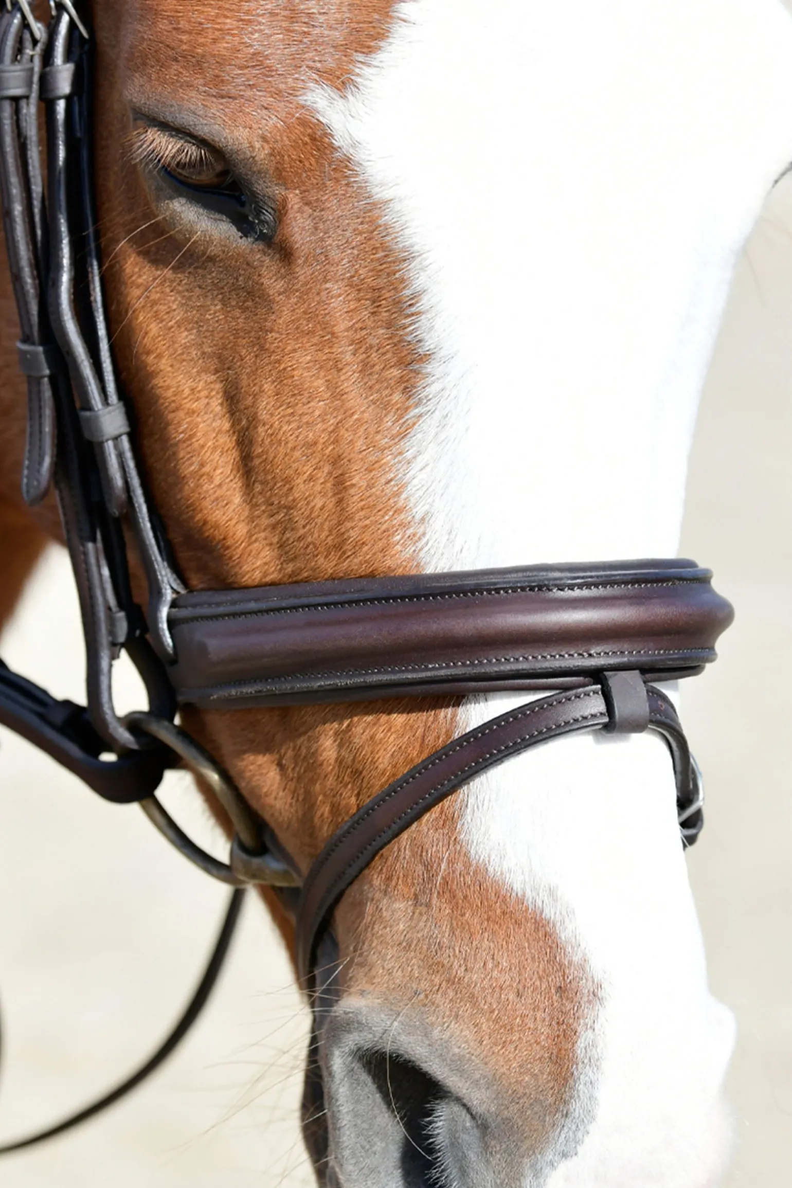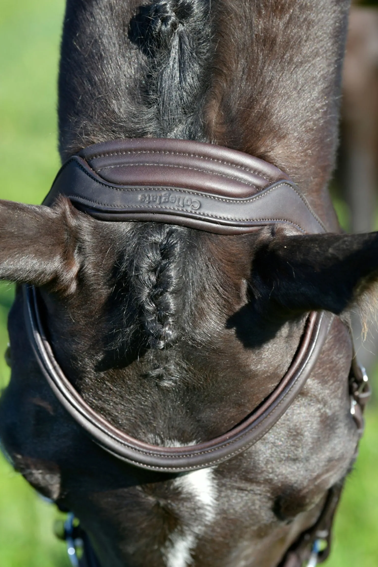 Diese Trense wird aus feinstem europäisch und indisch gegerbtem Leder gefertigt und fühlt sich besonders weich und geschmeidig an – für besten Komfort deines Pferdes. Das edle, erhabene Lederdesign mit tonalen Nähten macht sie zum Hingucker im Alltag und auf dem Turnier. Das anatomische Kopfstück ist weich gepolstert und im Genick breiter geformt, um den Druck gleichmäßig zu verteilen. Der Blitzriemen lässt sich abnehmen und in ein klassisches Kappzaum-Nasenband verwandeln. Robuste Beschläge aus rostfreiem Stahl und doppelseitige Verstellmöglichkeiten sorgen für eine perfekte Passform. Die passenden Zügel bekommst du separat.