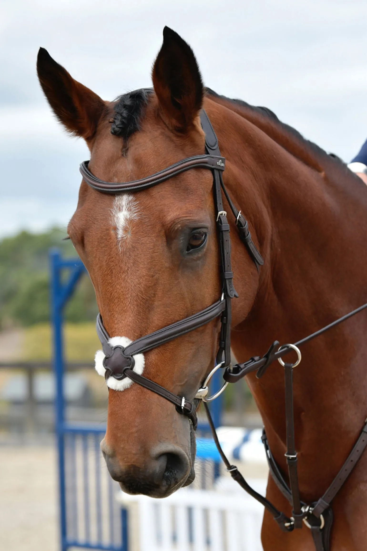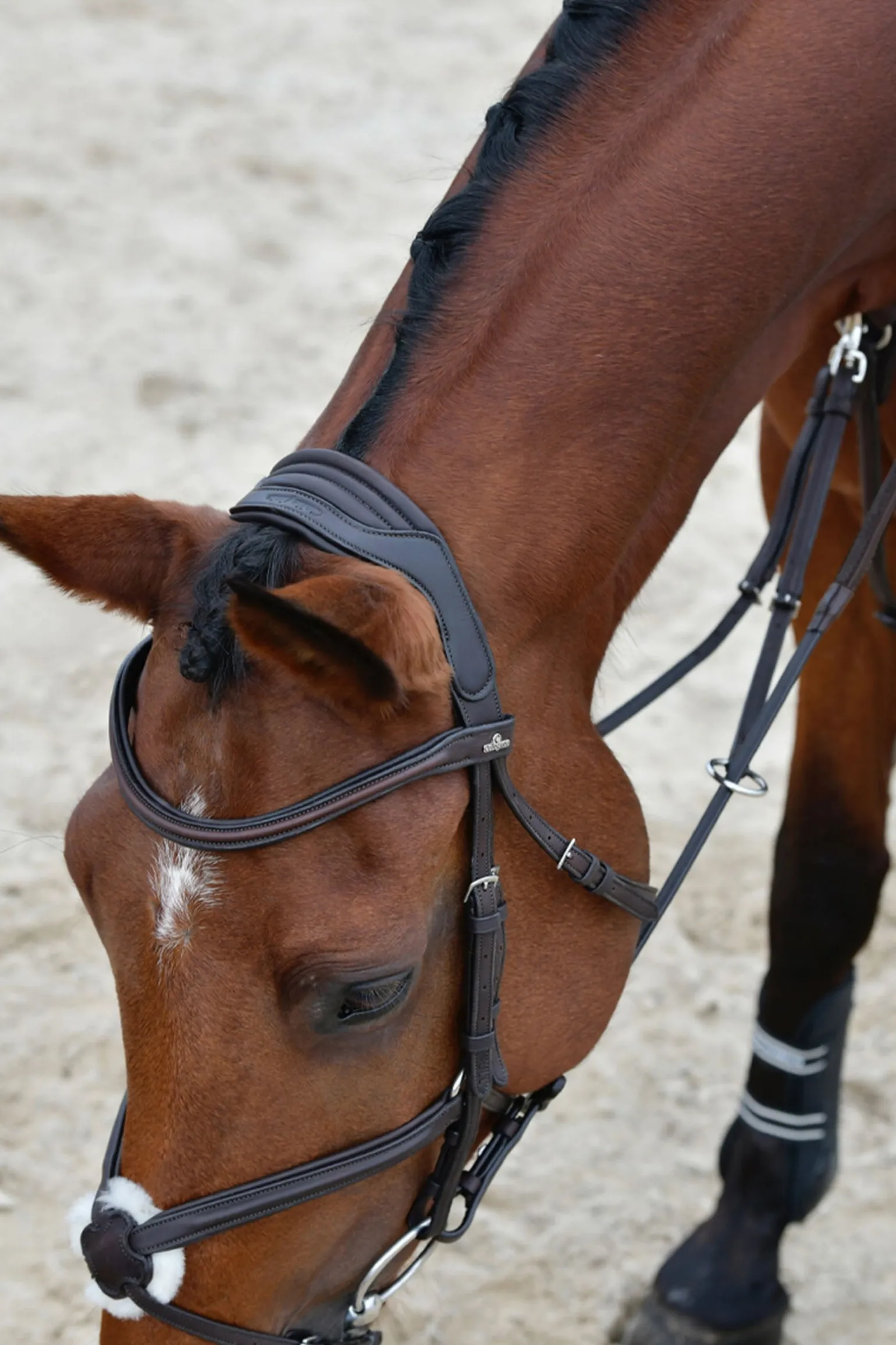 Diese Trense wird aus feinstem europäisch und indisch gegerbtem Leder gefertigt und fühlt sich besonders weich und geschmeidig an – für optimalen Komfort deines Pferdes. Das erhabene Lederdesign mit stilvollen tonalen Nähten verleiht ihr einen edlen Look. Das anatomisch geformte Kopfstück ist durchgehend weich gepolstert und im Genick breiter geschnitten, damit der Druck gleichmäßig und angenehm verteilt wird. Für zusätzlichen Komfort sorgt die abnehmbare Schafslederscheibe, die sich leicht reinigen lässt – alternativ kannst du auch eine Glattlederscheibe einsetzen. Robuste Beschläge aus rostfreiem Stahl und verstellbare Schnallen an Nasen- und Kehlriemen auf beiden Seiten ermöglichen eine präzise Passform. Perfekt für den Alltag oder den Turnierstart. Die passenden Zügel sind separat erhältlich.