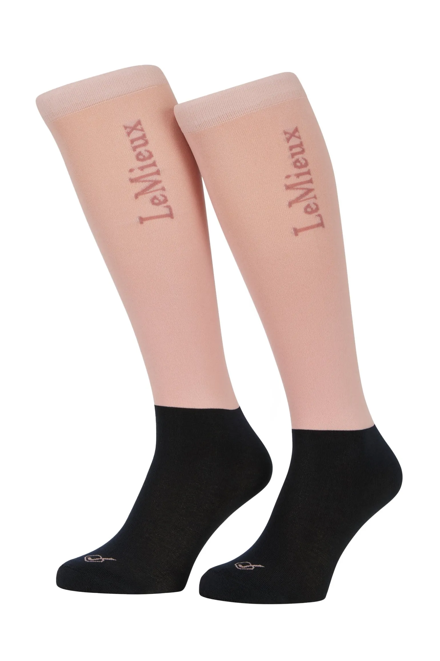 Die LeMieux Competition Socks bieten hervorragenden Komfort und optimale Leistung für Reiter. Die weiche, eng gewebte Fußpartie sorgt für ausgezeichneten Halt und Stabilität in Reitstiefeln. Eine Naht an der Oberseite verhindert Druckstellen an den Zehen und maximiert den Tragekomfort. Das ultraleichte, elastische Obermaterial passt sich perfekt an das Bein an, minimiert die Materialdicke und gewährleistet eine optimale Passform in Reitstiefeln. Erhältlich im 2er-Pack – ideal für Turniere und den täglichen Gebrauch.