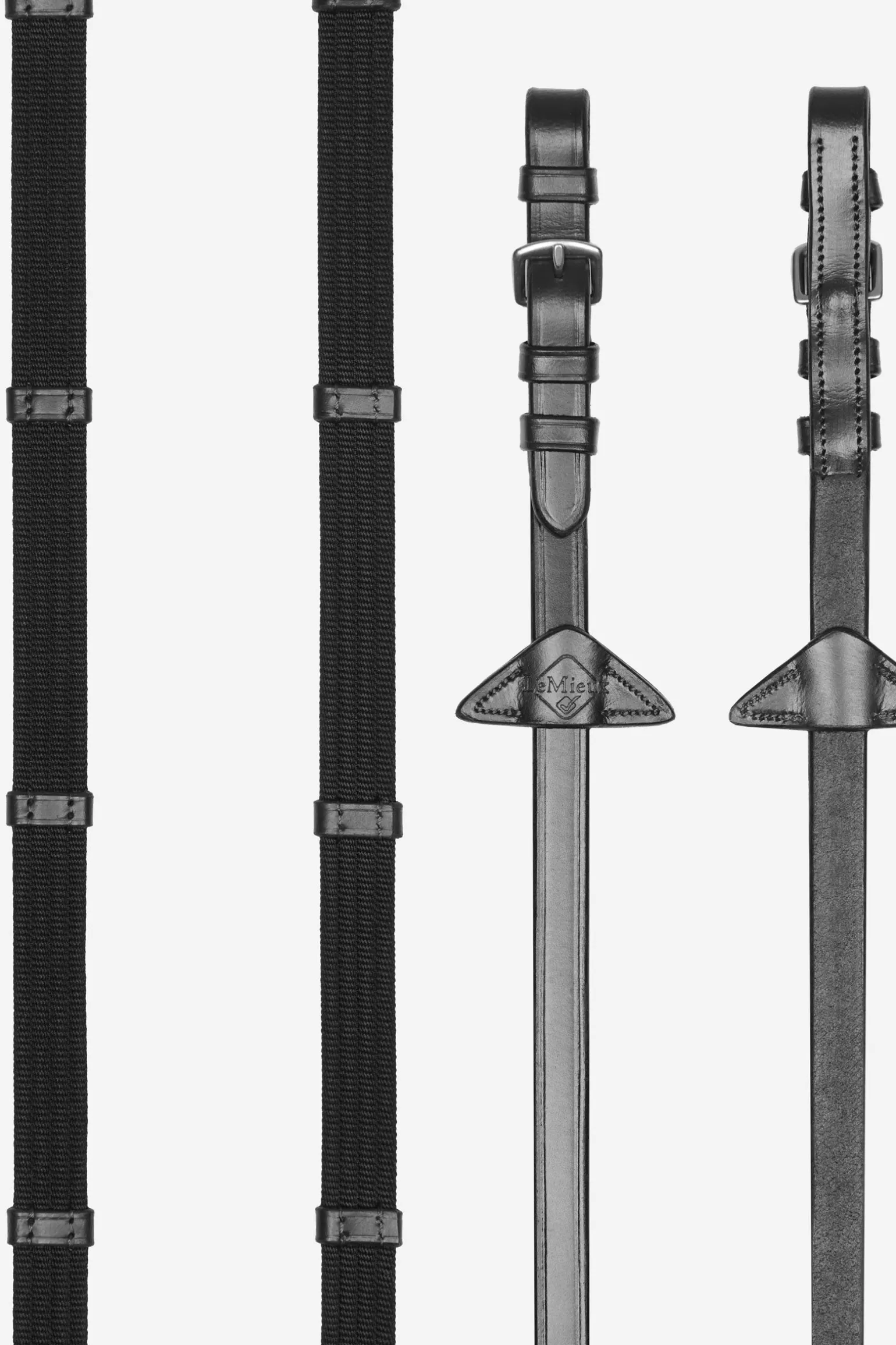 Gefertigt aus weichem, vorgeöltem Leder sind LeMieux-Zügel eine hochwertige Wahl. Diese komfortablen Zügel mit flachem Profil bestehen aus Gurtmaterial und verfügen über lederne Anti-Rutsch-Zügelstopper für besseren Halt. Die markentypischen Martingalstopper aus Leder sorgen für einen unverwechselbaren Look, während die Gebissschnallen einen einfachen Zügelwechsel ermöglichen.
