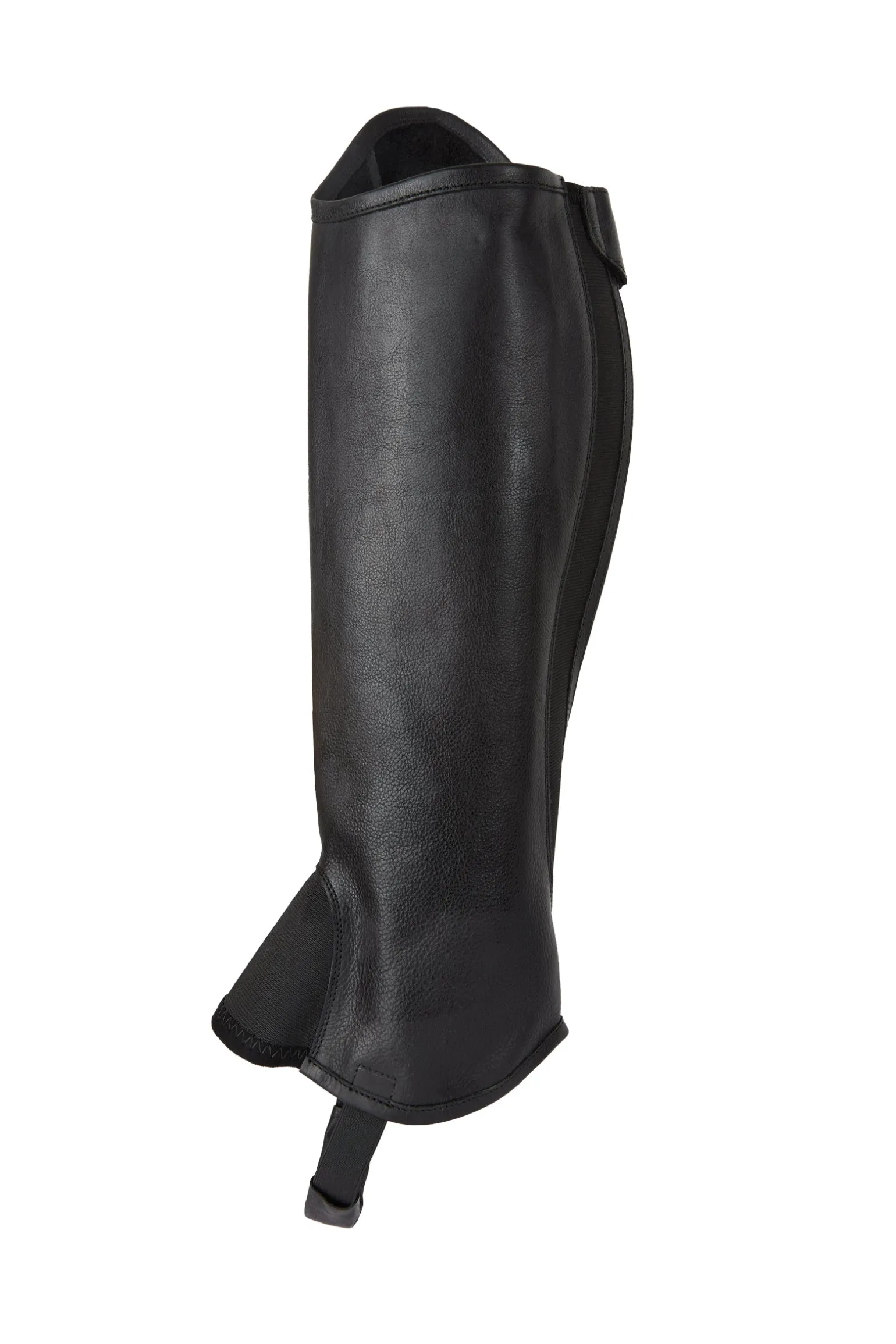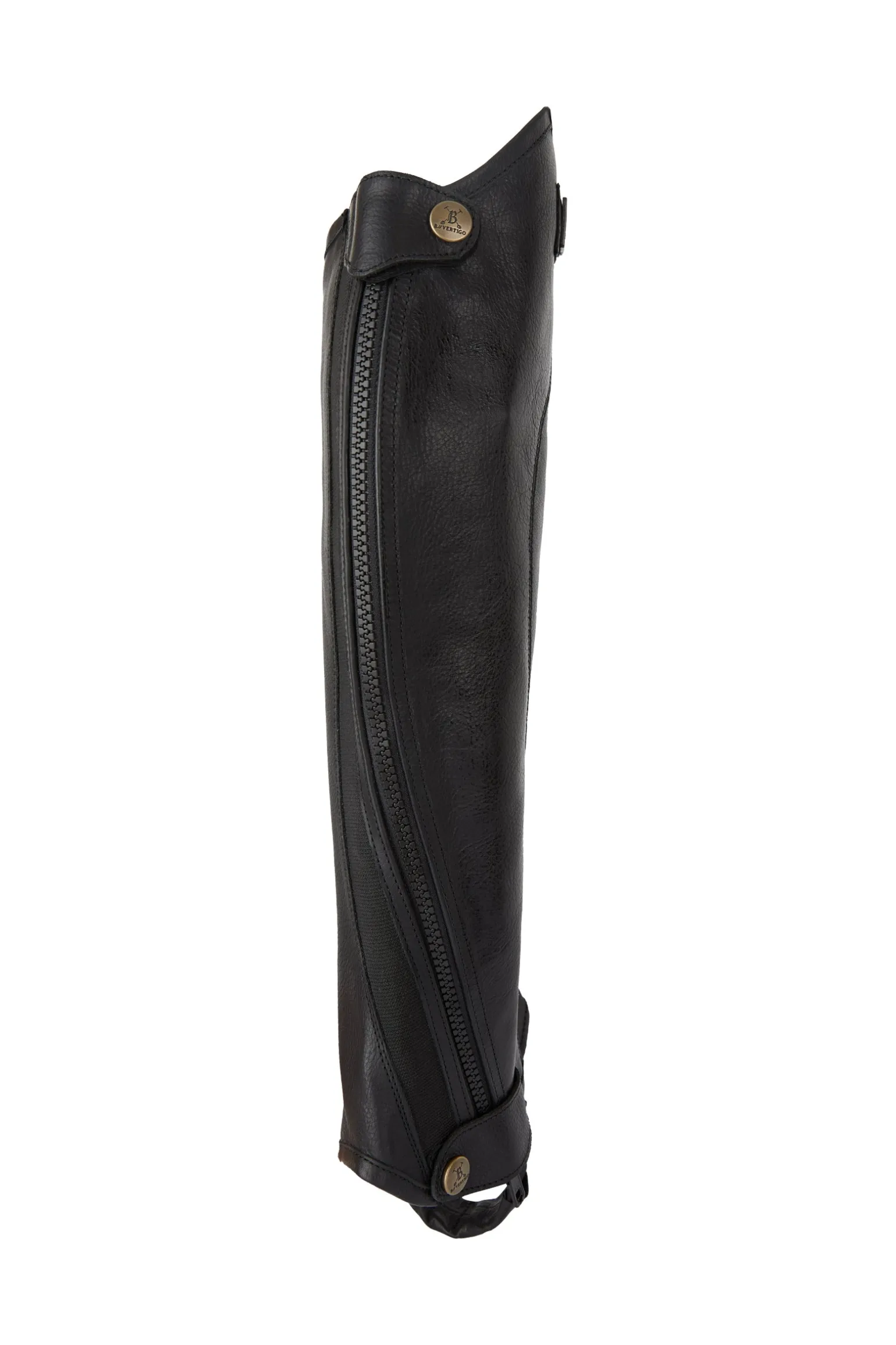 Die B Vertigo Cosmos Chaps sind aus weichem Leder gefertigt und mit elegant geformten Nähten designed. Ein Reißverschluss auf der Rückseite erleichtert den Einstieg und Elastik um den Reißverschluss sorgt für Komfort beim täglichen Tragen. Die Druckknöpfe schließen sicher. Ein Metalllogo am oberen Schaft macht diese Chaps elegant. Kombiniere sie mit deinen liebsten B Vertigo oder Horze Stiefeletten und los geht’s!