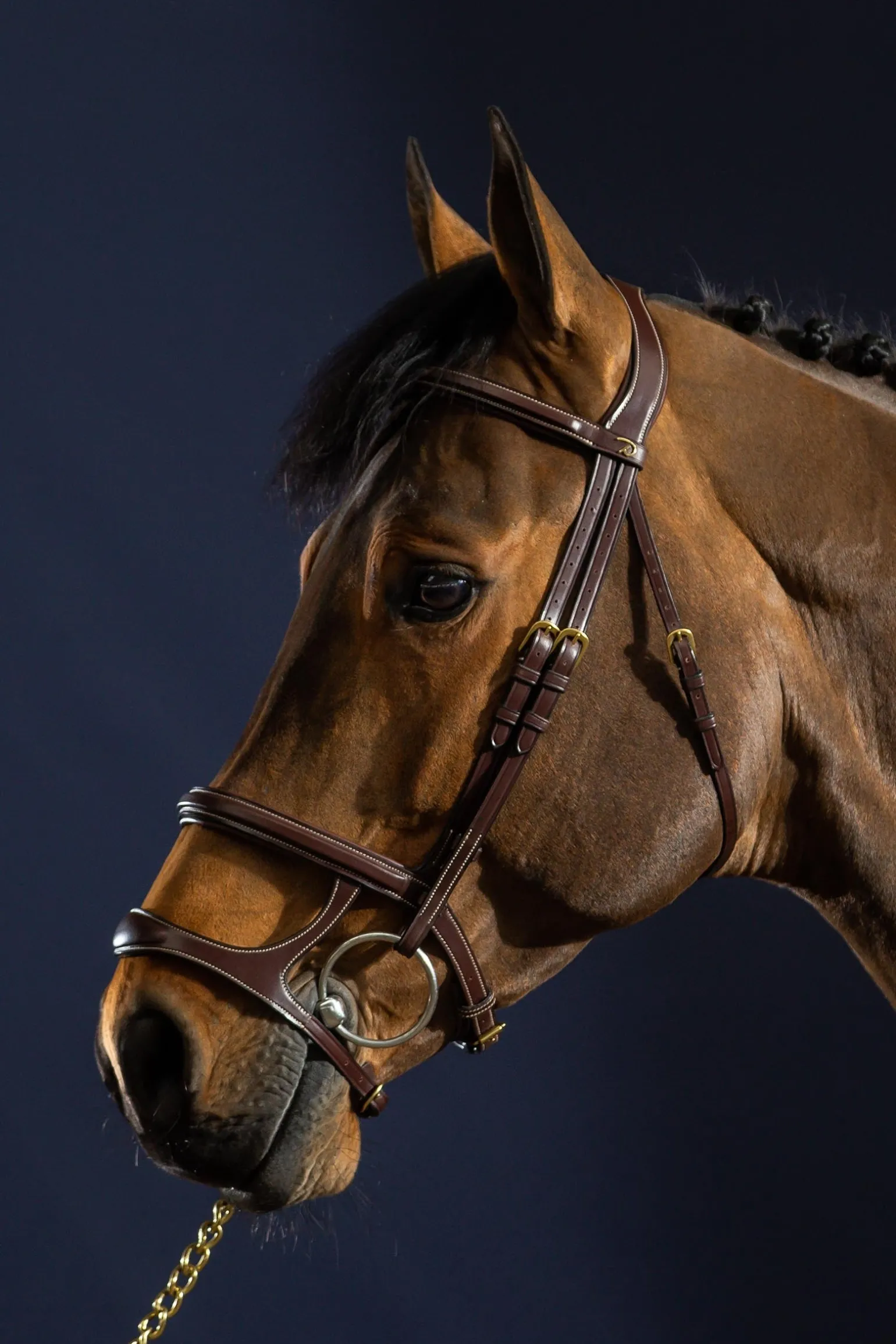 Entdecke unvergleichliche Kontrolle und stilvolle Eleganz mit der Dy’on Trense mit Doppelnasenriemen. Das innovative Design mit zwei parallel verlaufenden Nasenriemen bietet mehrere Kontaktpunkte und sorgt für mehr Kontrolle, indem es das Maul deines Pferdes geschlossen hält und die Konzentration sowie die Reaktionsbereitschaft fördert. Besonders nützlich ist sie für Pferde, die zusätzliche Führung und Stabilität benötigen. Der Tragekomfort steht an erster Stelle: Weiche Polster verhindern Scheuern und sorgen für eine gleichmäßige Druckverteilung. Die verstellbaren Backenstücke ermöglichen eine individuelle Anpassung an verschiedene Kopfformen und -größen, sodass sie perfekt sitzt. Kombiniere sie mit passenden Dy’on-Zügeln oder einem Martingal für einen stimmigen und professionellen Look.