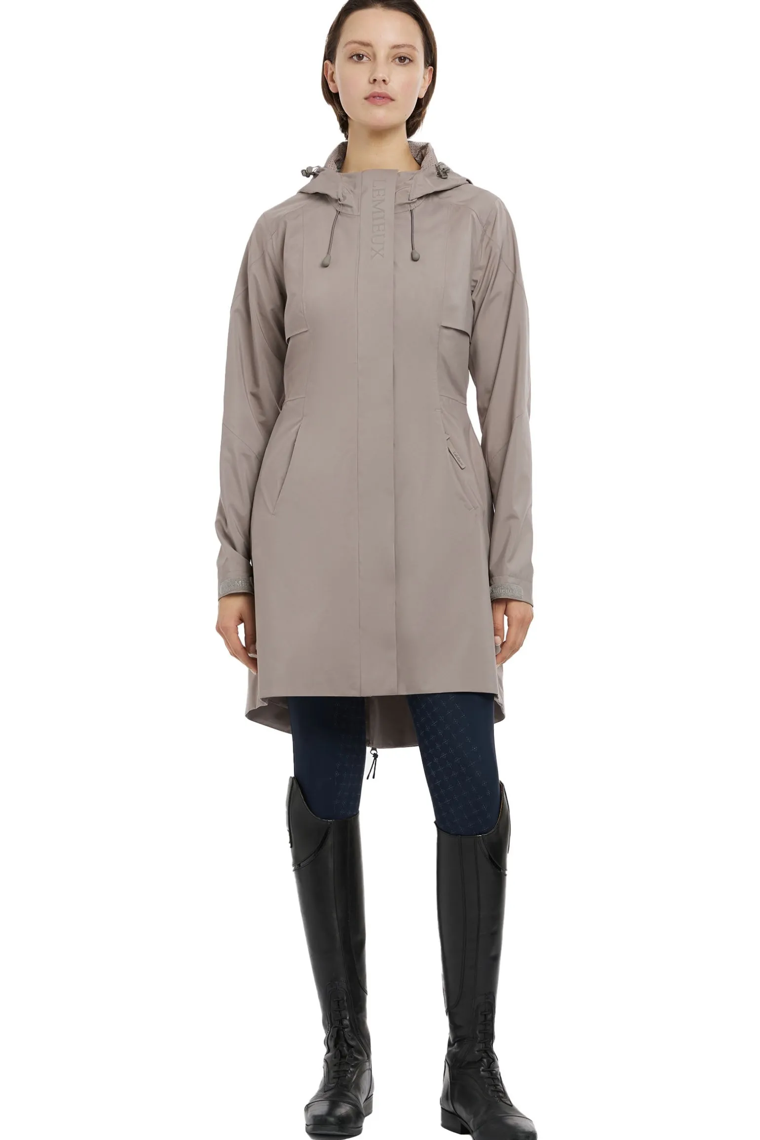 Die LeMieux Grace Damen Langregenjacke ist eine leichte, atmungsaktive und wasserdichte Jacke, die optimalen Schutz bei schlechtem Wetter bietet. Die strapazierfähige, wasserdichte Beschichtung und vollständig versiegelte Nähte verhindern zuverlässig das Eindringen von Regen. Wasserdichte Reißverschlusstaschen und ein praktischer 2-Wege-Frontreißverschluss sorgen für Funktionalität und Komfort. Das vollständig gefütterte Design mit einem rückseitigen Reißverschluss-Schlitz ermöglicht uneingeschränkte Bewegungsfreiheit beim Reiten. Eine feste Kapuze bietet zusätzlichen Schutz vor den Elementen und macht diese Jacke zu einer idealen Wahl für den Stall und den Alltag.