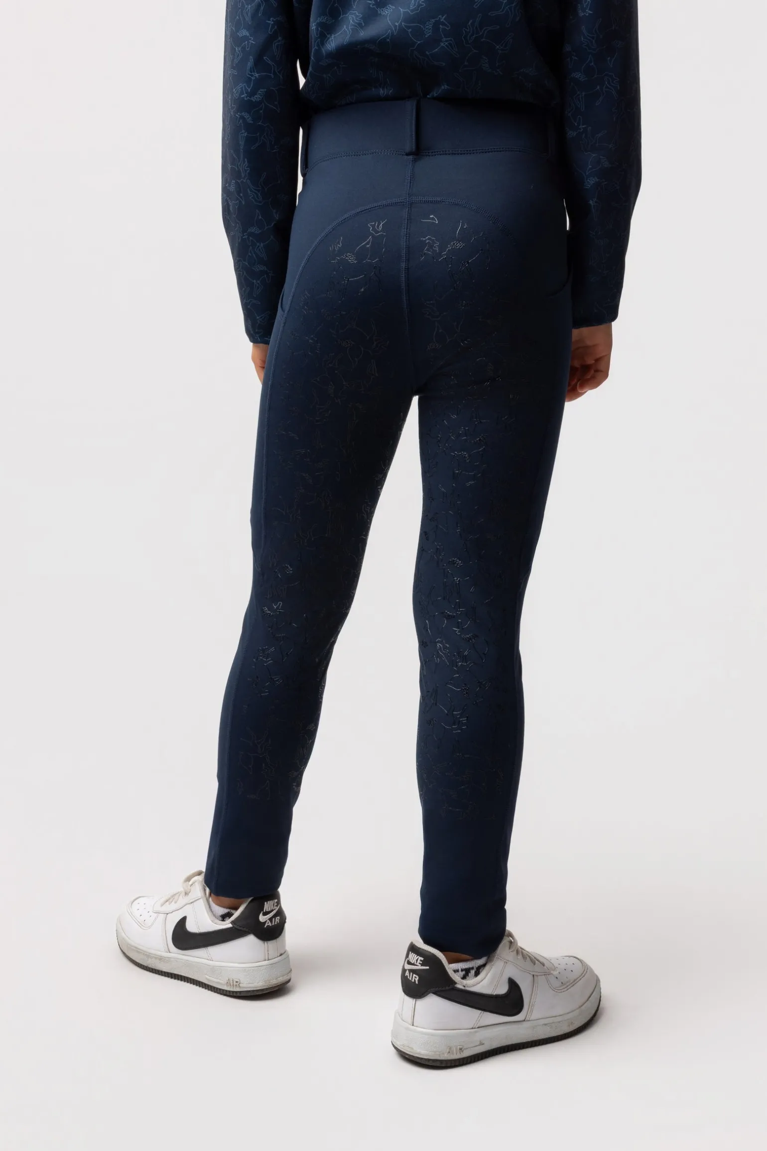 Warm, breathable riding tights with a playful unicorn grip.