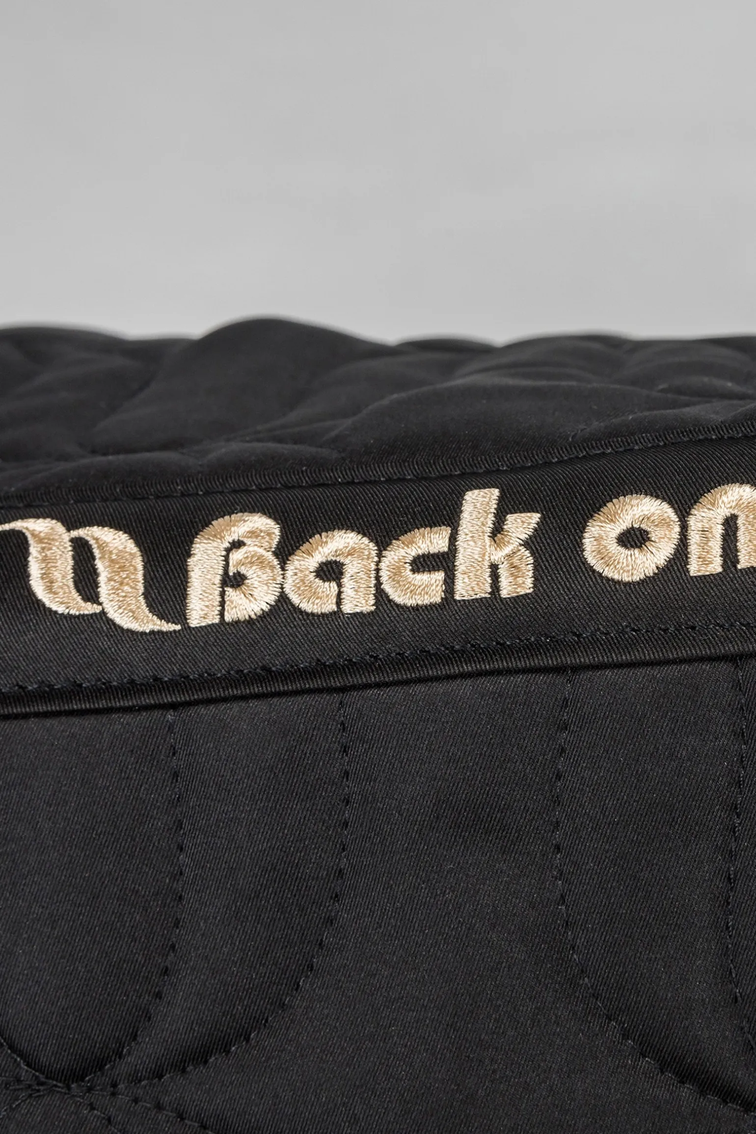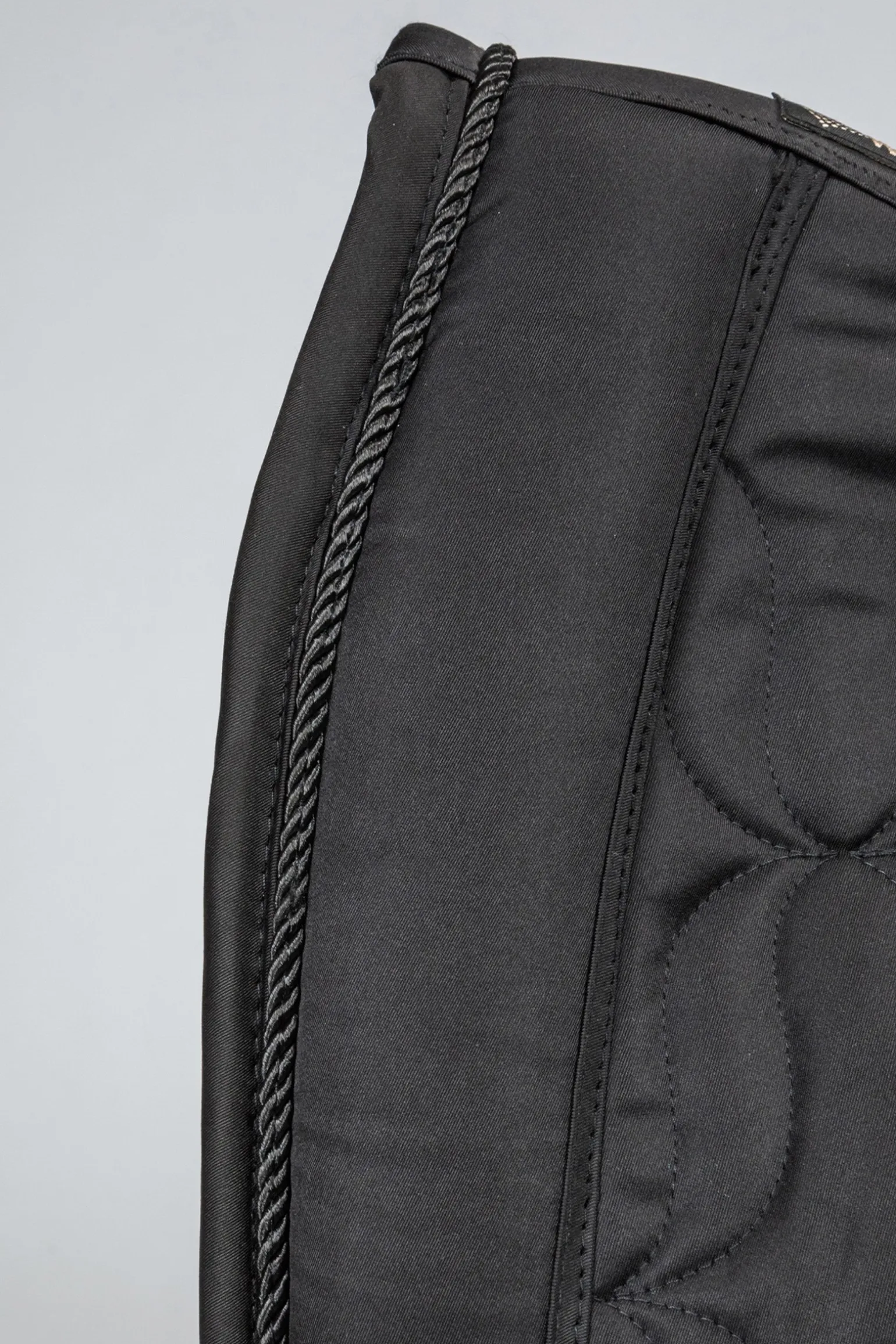 Die Deep Nights Schabracke ist eine raffinierte Ergänzung zur hochgeschätzten Nights-Kollektion. Sie ist in Tiefschwarz mit schwarzen Verzierungen und einem dezenten Logo-Emblem erhältlich. Das Back on Track Wings-Emblem ist in ein Steppmuster integriert, das sich über eine schwarze, glänzende Oberfläche erstreckt – ein dezenter Ausdruck purer Eleganz.