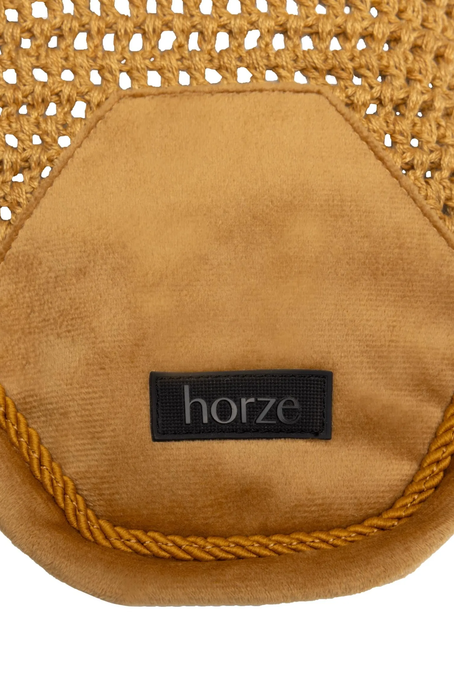 Verleihe dem Aussehen deines Pferdes mit der stilvollen und dennoch funktionalen Horze Optical Vibration Ohrenhaube das gewisse Etwas. Die hochwertig verarbeitete Ohrenhaube besteht aus einem dehnbaren Mesh-Gewebe mit Dry-Fit-Technologie an den Ohren und bietet außergewöhnlichen Komfort und Bewegungsfreiheit für dein Pferd. Das elegante, weiche Häkelmuster ergänzt das weiche Samtmaterial am vorderen Schild und die Einfassung, die mit einer weichen Kordelbiese in abgestimmten Farben wunderschön abgerundet ist. Perfekt abgestimmt auf die Horze Optical Vibration Satteldeccke (erhältlich als Dressur- oder Vielseitigkeitsschnitt) für einen raffinierten Look, der überall die Blicke auf sich zieht.