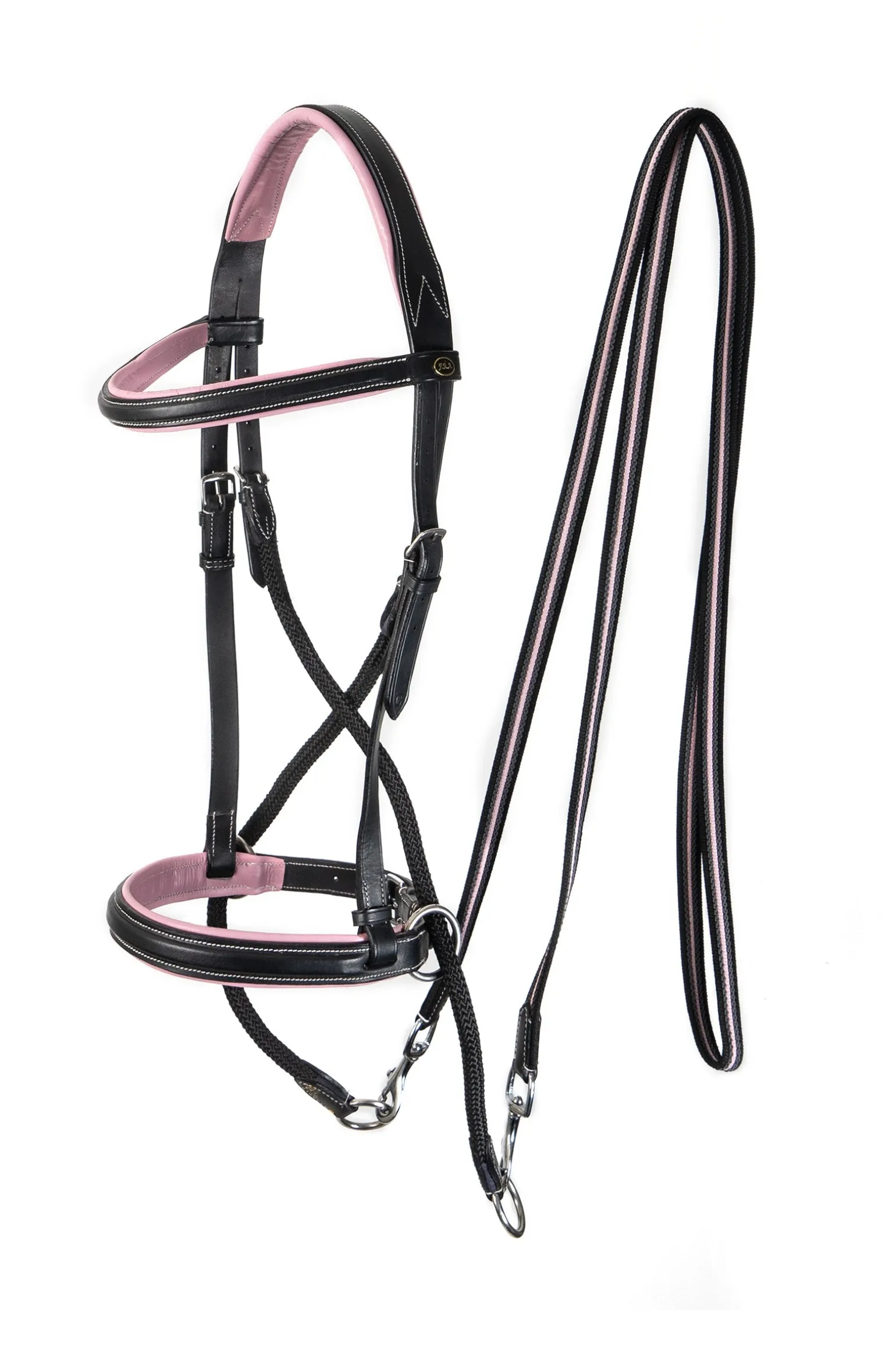 Das Leder-Nasenband dieser Trense ist auf beiden Seiten, direkt hinter dem Backenstück, mit Ringen ausgestattet. Durch diese Ringe verläuft ein flexibles Lederband, das über das Kinn kreuzt, entlang der Kiefer verläuft und über den Nacken führt. An beiden Enden dieses Bandes sind die Schnallen oder Clips der Zügel befestigt. Auf der linken Seite der Trense befinden sich eine Schnalle zur Anpassung des Backenstücks und eine weitere Schnalle zur Befestigung der gekreuzten Riemen. Um den Nackenbereich zu schützen, sind beide Riemen mit einer weichen Polsterung versehen. Die Riemen sollten so in die Schlaufen dieser Nackenpolsterung gelegt werden, dass sie auf beiden Seiten die gleiche Länge haben. Die Schnalle des Kinnriemens ist die einzige, die benötigt wird, um die Trense am Kopf zu befestigen. Wie bei den meisten gebisslosen Zäumungen sollte das Nasenband auf dem harten Teil der Nase platziert werden, etwa dort, wo der Nasenknochen beginnt. Der Kinnriemen kann sich instinktiv straff anfühlen, darf aber auf keinen Fall zu fest angezogen werden, um ein Verdrehen der Trense zu verhindern. Die Backenstücke gebissloser Trensen mit einem Kinn- und Nacken-Kreuzsystem neigen immer dazu, sich leicht nach außen zu wölben. Beim Einsatz der gekreuzten Zügelführung erhöht sich der Druck auf die linke Wange, wenn der rechte Zügel angenommen wird, und umgekehrt. Dies unterstützt das Einleiten von Wendungen. Gleichmäßiger Druck auf beide Zügel erzeugt Druck auf die Nase, den Nacken und die Kiefer des Pferdes und ermöglicht so die Hilfengebung für Tempowechsel und das Anhalten. Das Maß an asymmetrischer Einwirkung hängt von der Intensität der durch den Reiter gegebenen Zügelhilfen ab. Die gekreuzten Riemen sollten gut gepflegt werden, um eine reibungslose Druckentlastung zu gewährleisten. Die Trense eignet sich für empfindliche und weniger empfindliche Pferde in allen Disziplinen. Dank der fein dosierbaren Einwirkung ist sie mit leichtem Zügelkontakt besonders gut für die Dressur geeignet und bietet darüber hinaus zusätzliche Möglichkeiten zum Reiten weniger sensibler Pferde. In dieser Kategorie kann die Trense auch als Fahrzaum verwendet werden. Technisch ist sie jedoch nicht als Halfter geeignet.
