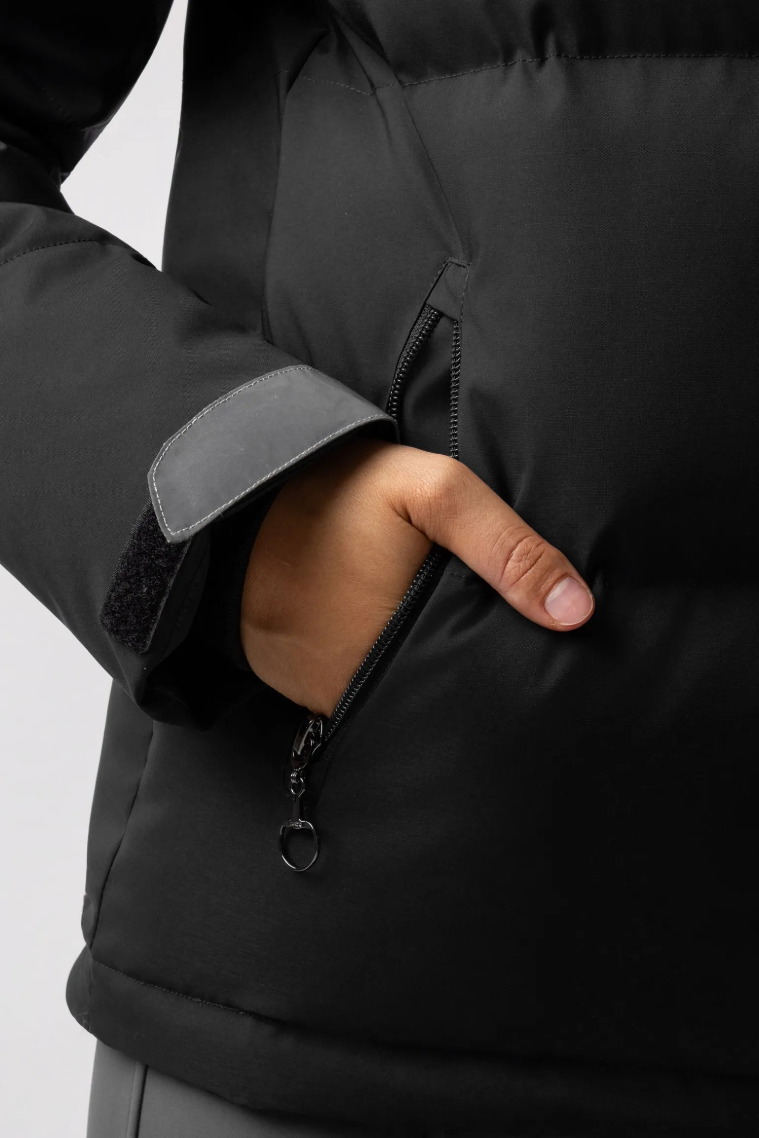 Die neue gepolsterte Dina-Jacke besteht aus wasserdichtem Material, das vor Regen schützt, während die atmungsaktive Innenfutter Überhitzung verhindert. Zwei Taschen sorgen dafür, dass Ihre Sachen sicher aufbewahrt werden. Der Stehkragen und der weiche Innenkragen bieten zusätzliche Wärme. Die Kapuze hat spezielle Eigenschaften: Sie ist abnehmbar und verfügt über einen reflektierenden Rand, der zusätzliche Sicherheit bietet. Das stylische Design und der moderne Schnitt runden Ihr Outfit ab.